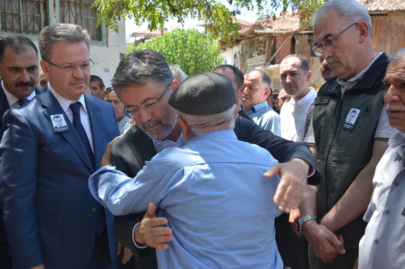 Tarım ve Orman Bakanımız İbrahim Yumaklı, Manisa Valimiz Enver Ünlü ve Belediye Başkanımız Erkan Kara şehit babası Ali Dönertaş ve kardeşi Şener Dönertaş’a başsağlığı dileğinde bulundular.
