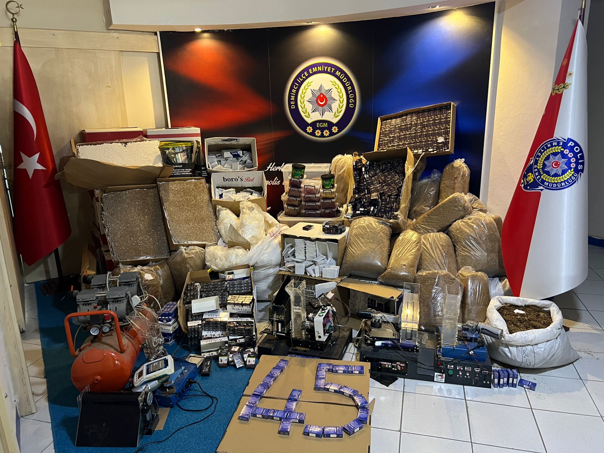 Emniyet Müdürlüğü tarafından yapılan operasyon da çok sayıda kaçak sigara, tütün ve makaron ele geçirildi.