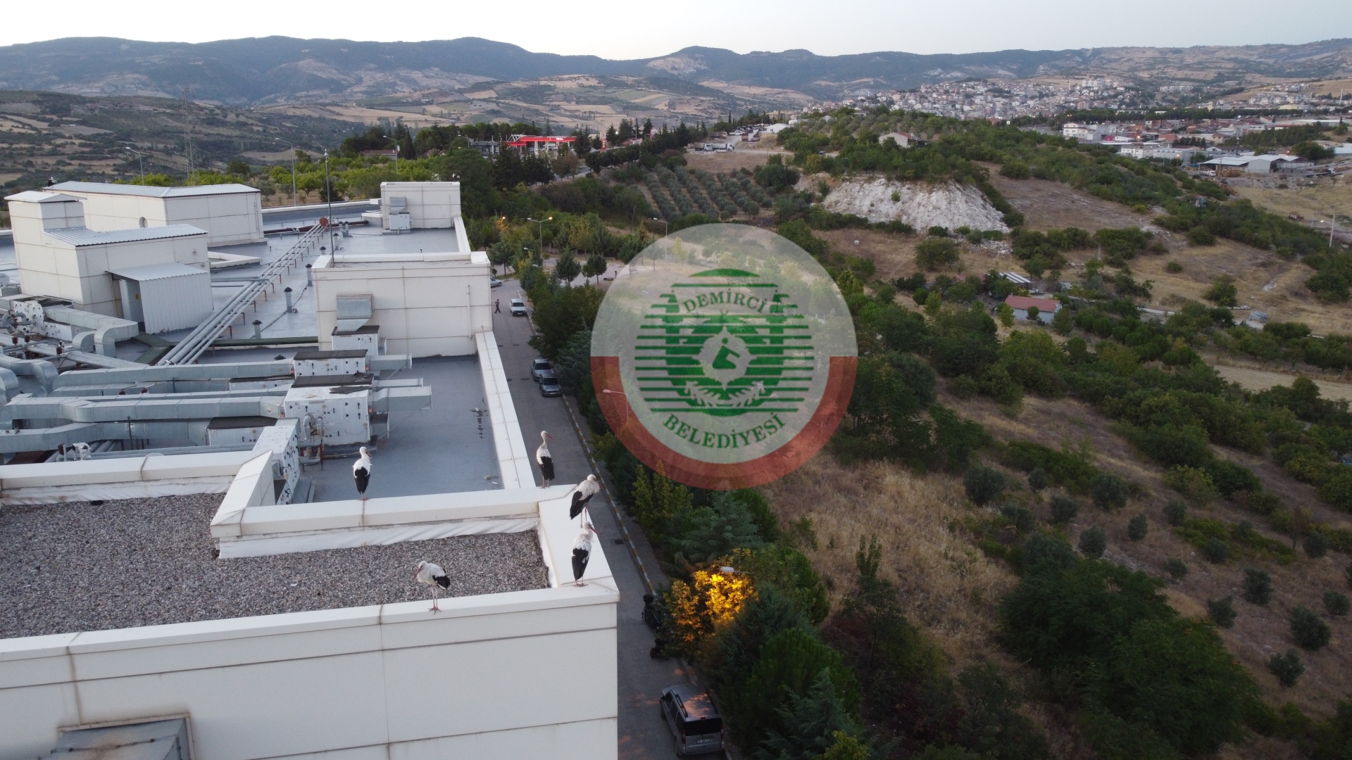 Ege Bölgesi'nde 850 metre rakımıyla çevresindeki yerleşim birimlerine göre yüksek konumda yer alan Demirci'de akşam saatlerinde leylekler sürpriz yaparak, mola verdiler.