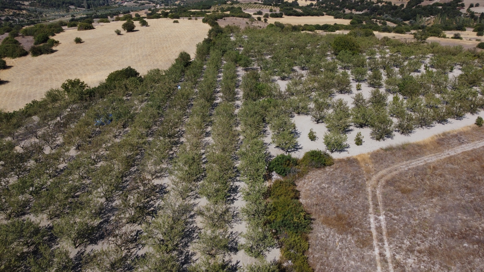 Hünnap, kiraz ve cevizin yanında son yıllarda badem üretiminin arttığı Demirci’de çiftçiler Ağustos ayı ve sıcaklıkların yükselmesi ile beraber tarlalarında badem hasadına başladı.