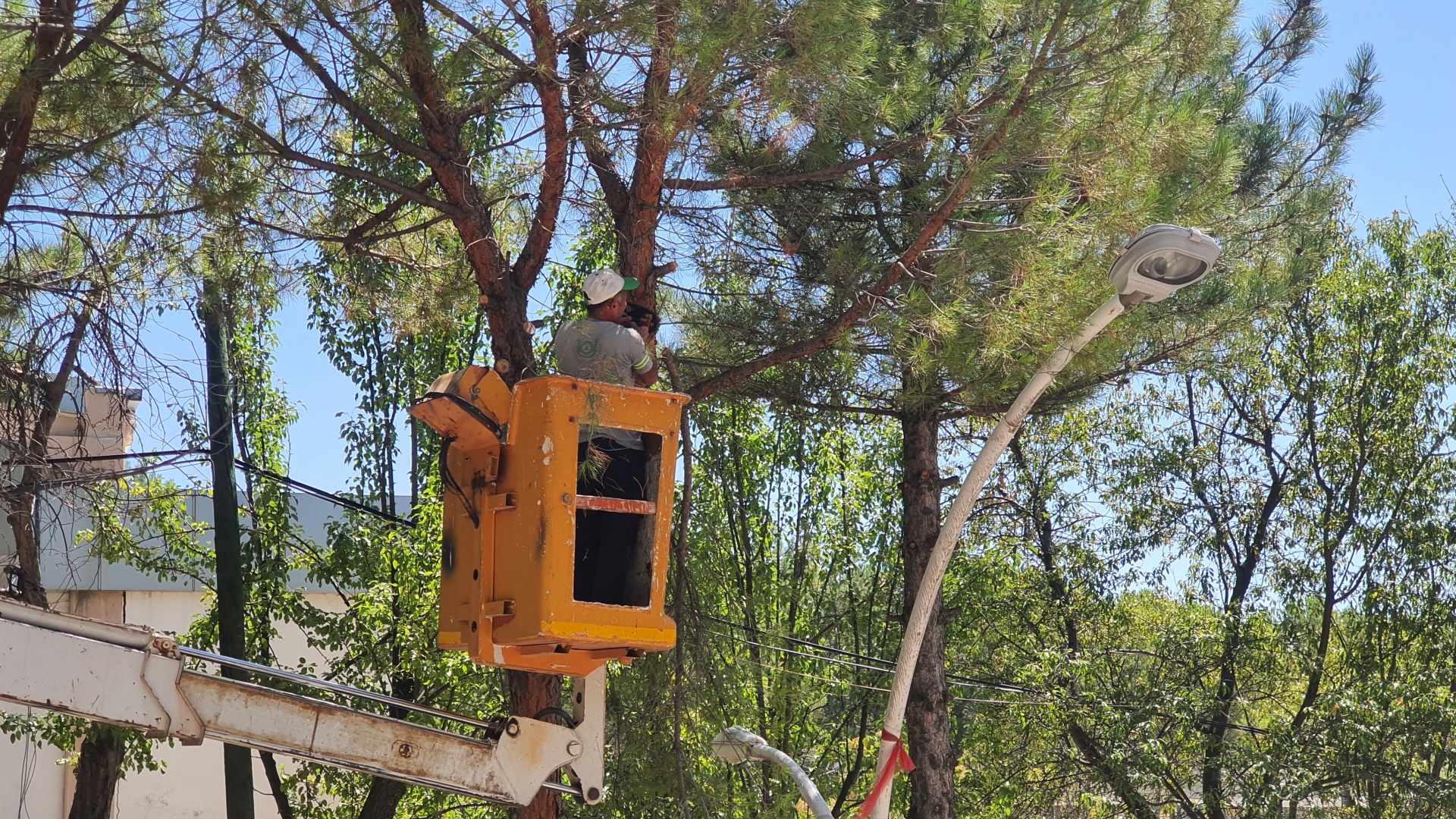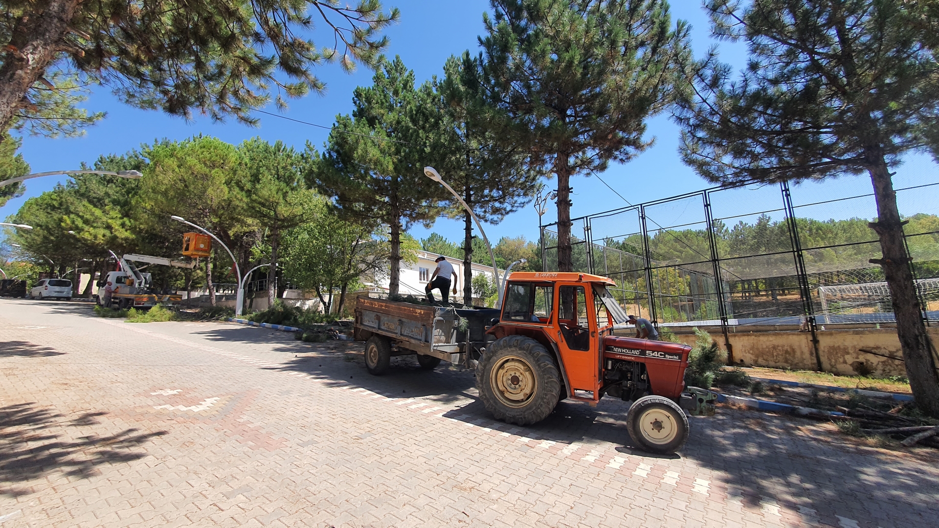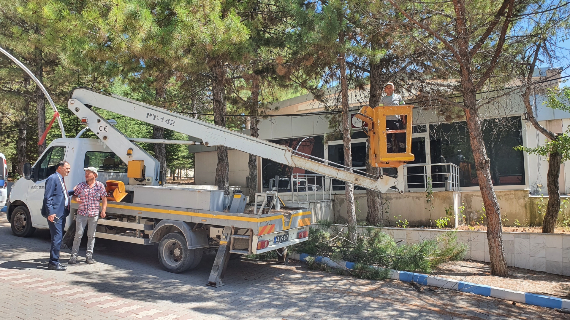 Eğitim Fakültesi girişinde bulunan görüş mesafesini etkileyen ve alanı kapatan ağaçların dallarında budama yapılırken, çamlık içerisinde çöp ve moloz temizliğine başlandı.