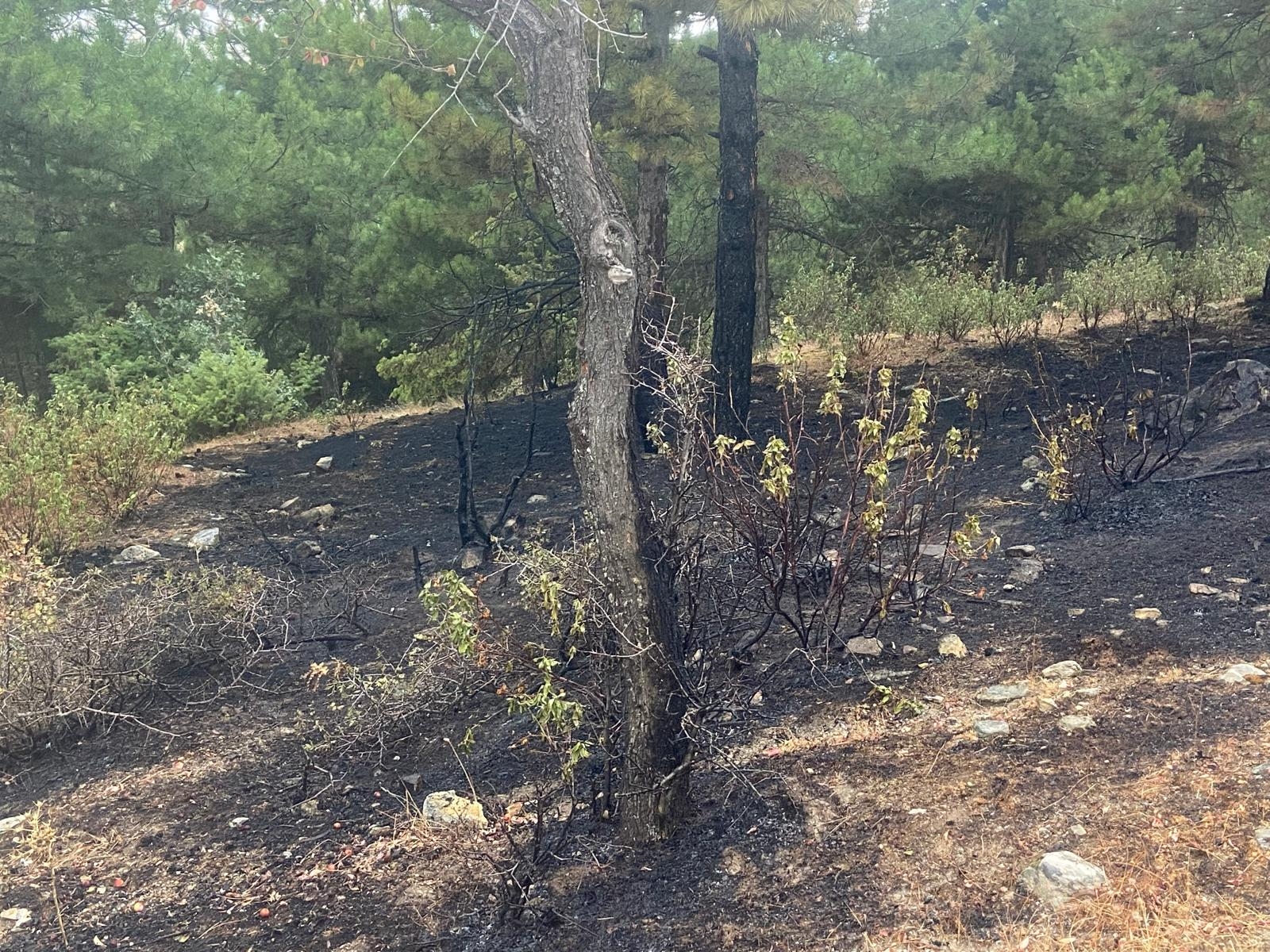 Orman İşletme Müdürlüğü yangın söndürme ekiplerince yaklaşık 1 saat süren müdahale ile söndürüldü.