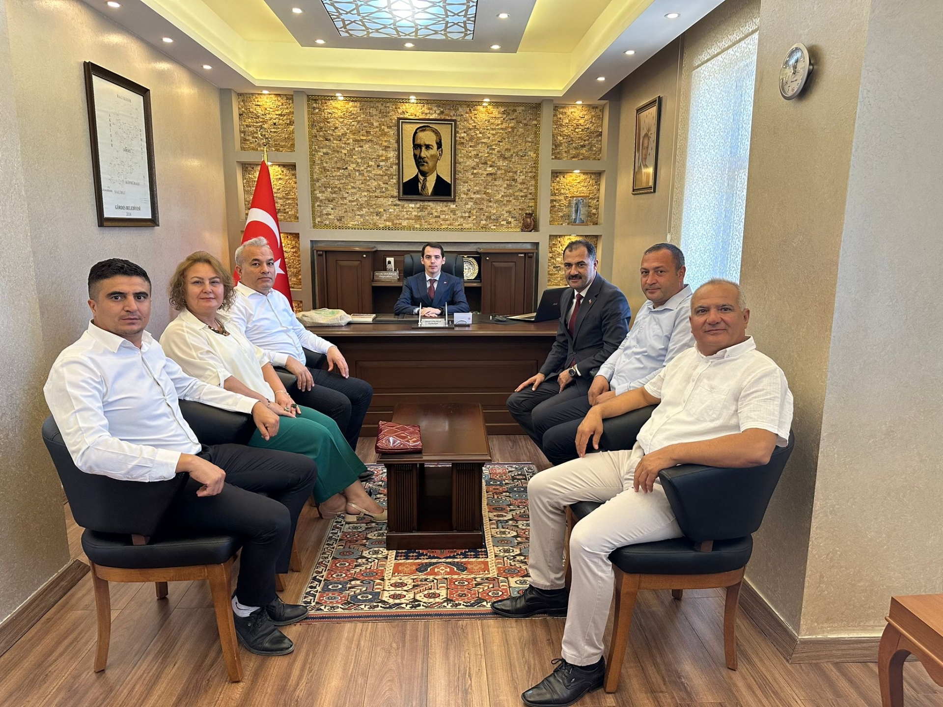 26 Ağustos 2024 Pazartesi günü Başkanımız Erkan Kara, AK Parti İlçe Başkanı Nurullah Akgün ve Yönetim Kurulu üyeleri ile birlikte geçtiğimiz günlerde büyük bir yangın felaketi ile mücadele eden Gördes ilçesinde Kaymakam Sercan Sakarya'yı makamında ziyaret ederek geçmiş olsun temennisinde bulundu.