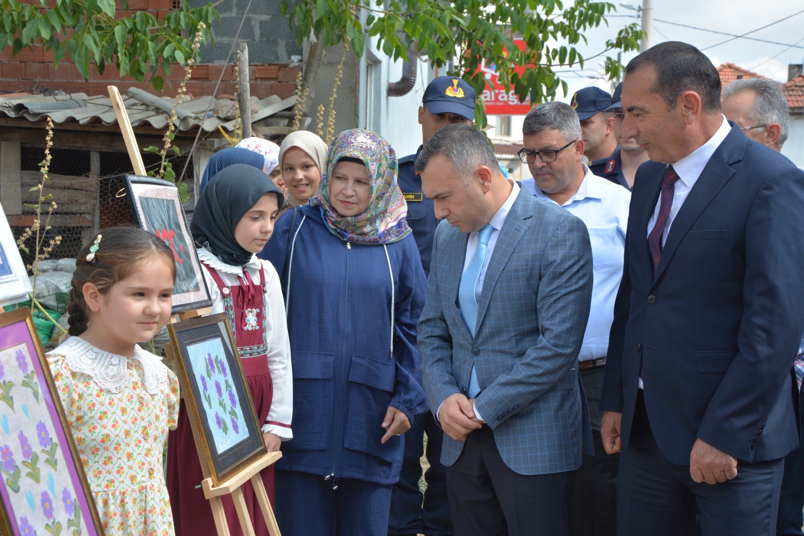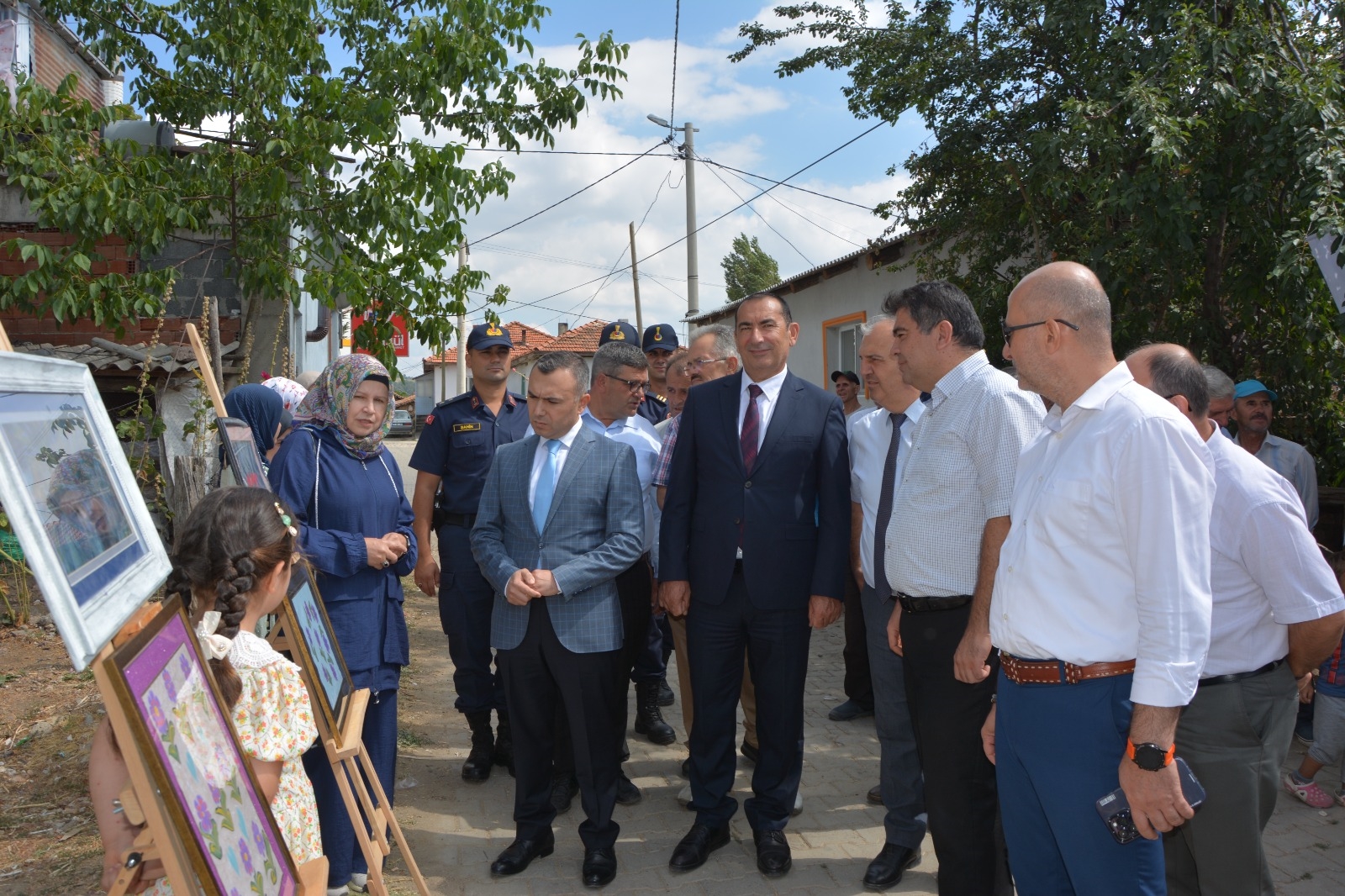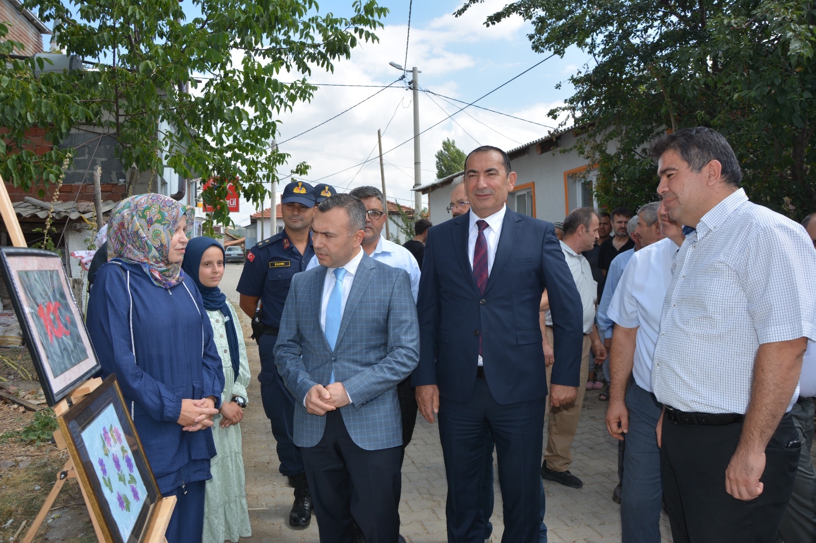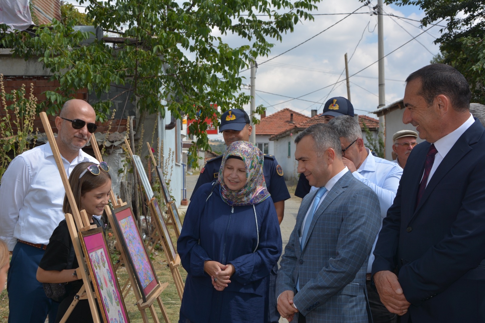 " Köyde Sanat Var " sergisinin açılışı ise Demirci Kaymakamımız Yavuz Arslan, Belediye Başkan Yardımcımız İsmail Hakkı Gül, İlçe Jandarma Komutanı Üsteğmen Uğurcan Şahin, İlçe Milli Eğitim Müdürü Bilal Çetinkaya, Halk Eğitimi Merkezi Müdürü Mehmet Taştekin, ilçe protokolü tarafından yapıldı.