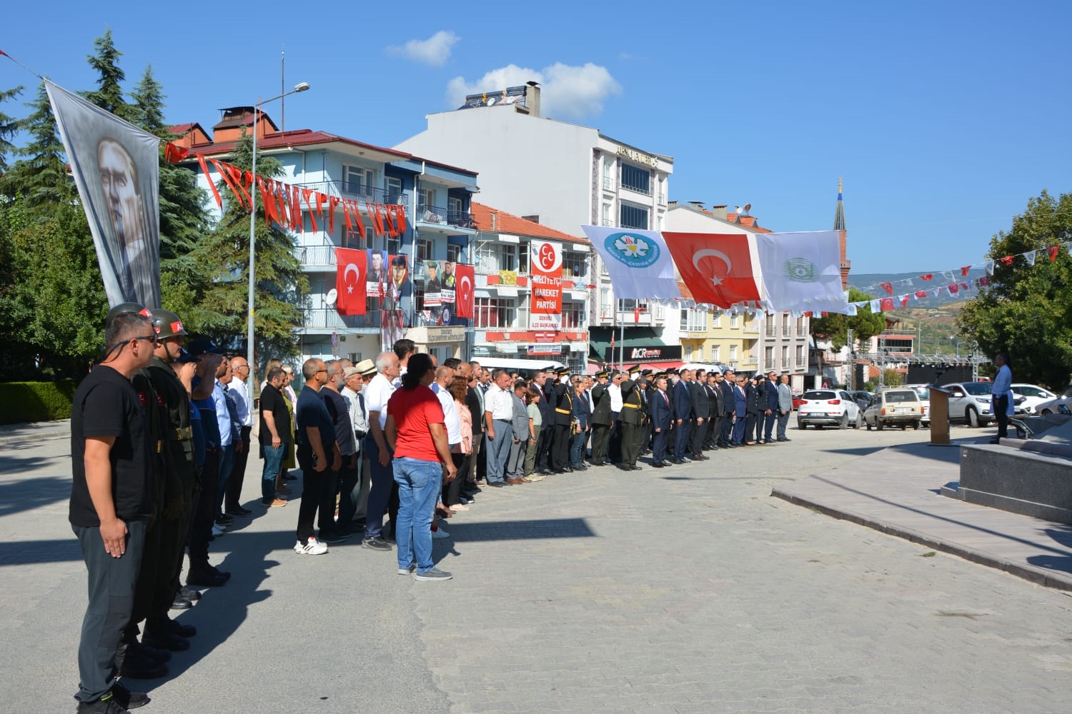 30 Ağustos Cuma günü Zafer Bayramı etkinlikleri kapsamında Kaymakamımız Yavuz Arslan, Garnizon Komutanı Mly. Binbaşı Hüseyin Cihan Korkmaz ve Belediye Başkanımız Erkan Kara tarafından Atatürk anıtına çelenk sunumu yapıldı.