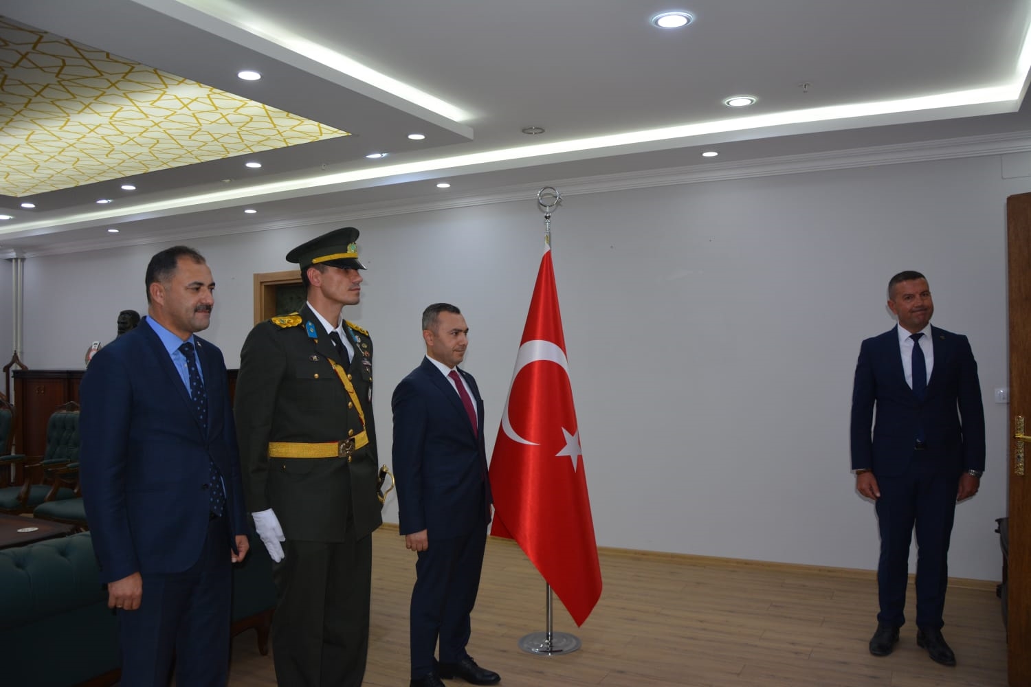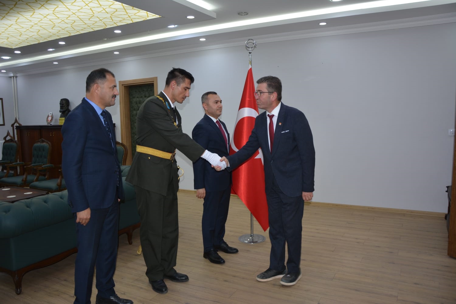 Öğrenciler tarafından okunan şiirlerin ardından Kaymakamımız Yavuz Arslan, Garnizon Komutanı Mly. Binbaşı Hüseyin Cihan Korkmaz ve Belediye Başkanımız Erkan Kara, Kaymakamlık makamında tebrikleri kabul ettiler.