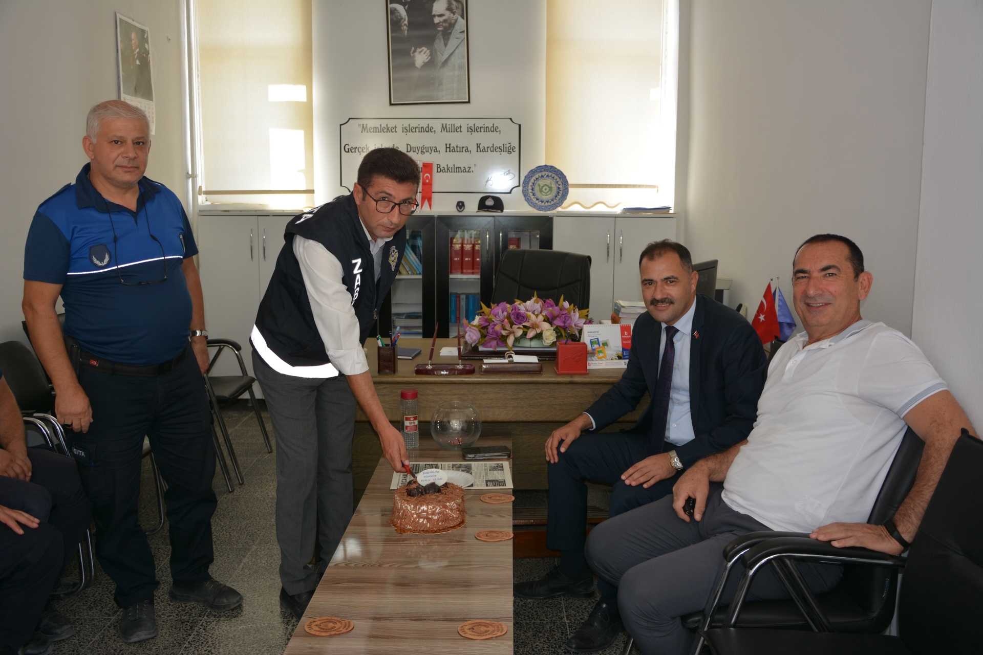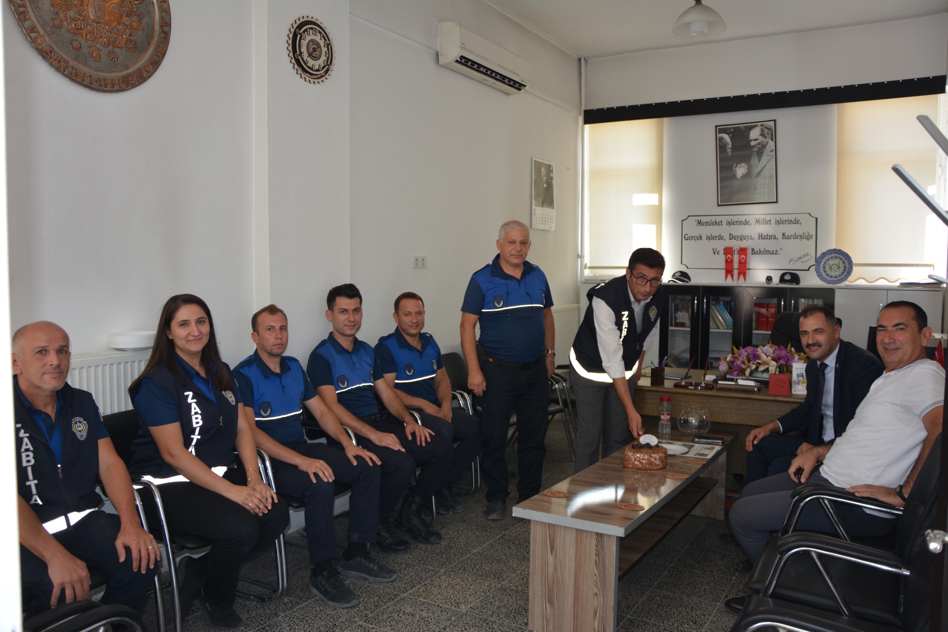 Belediye Başkanımız Erkan Kara, Zabıta Teşkilatının kuruluşunun 198. Yılı dolayısıyla zabıta müdürlüğü personelini ziyaret etti.
