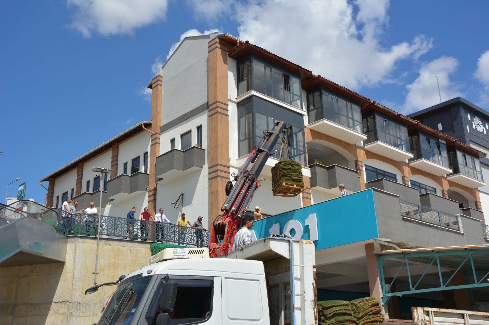 Kent merkezi girişinin yanı sıra balkon kısmında da yeşillendirme ve ağaç dikimi yapılarak yeşillikler içinde güzel alana dönüştü.