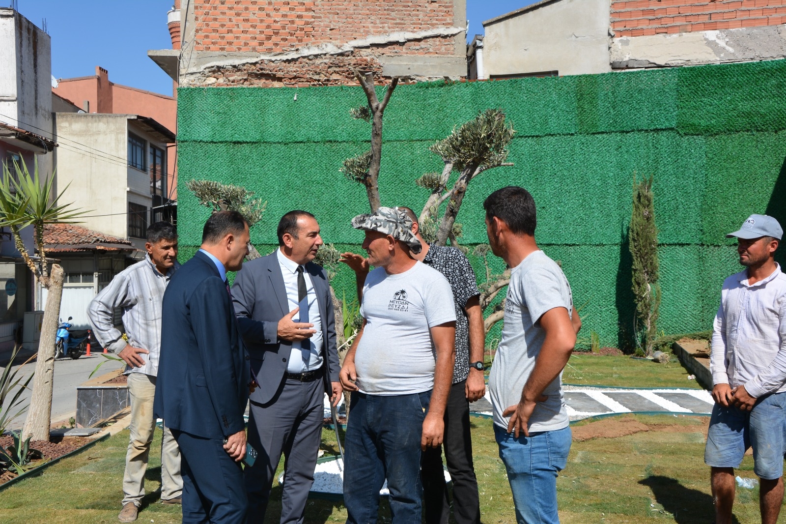Zeytin, palmiye, lavanta, biberiye ve arap yasemini gibi ağaç ve bitkiler dikilen kent merkezine zemin çimlendirilmesi de yapıldı.