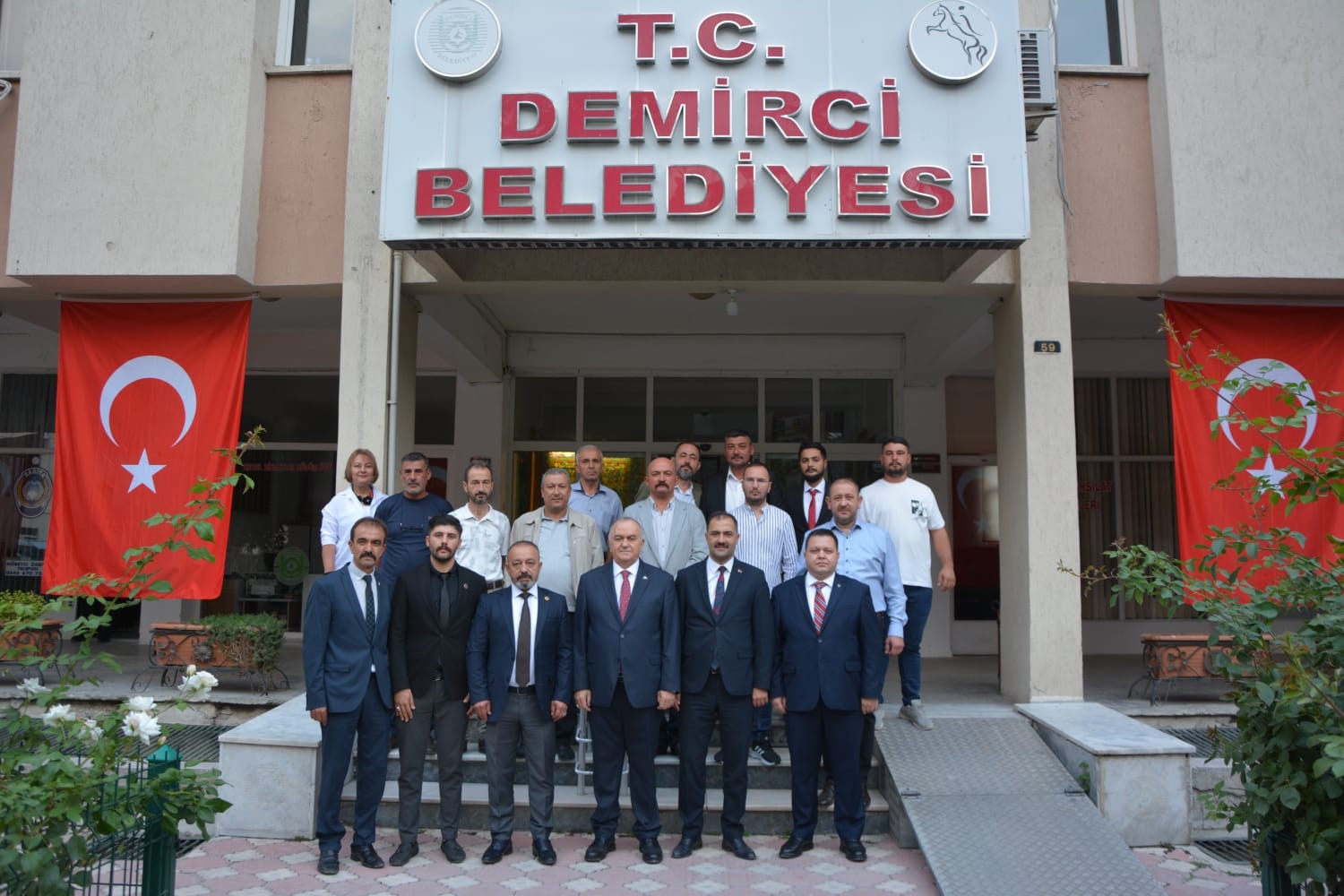 18 Eylül 2024 Çarşamba günü Milliyetçi Hareket Partisi (MHP) Grup Başkanvekili, Manisa Milletvekili Erkan Akçay, MHP Manisa İl Başkanı Cüneyt Tosuner, MHP Demirci İlçe Başkanı Ümit Kanyılmaz ve beraberindeki heyet Belediye Başkanımız Erkan Kara'yı makamında ziyaret ettiler.