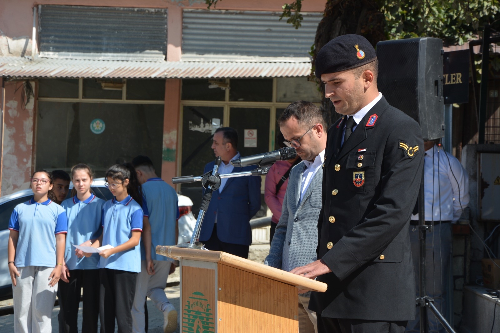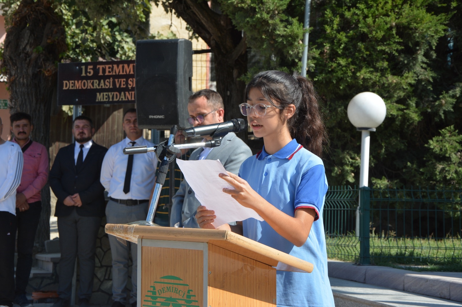Saygı duruşu ve İstiklal marşının okunmasının ardından Demircili Gazi Hasan Gümüş ve İlçe Jandarma Komutanlığından Astsubay Çavuş Mehmet Berkay Soyal tarafından günün anlam ve önemini belirten konuşma yapıldı.