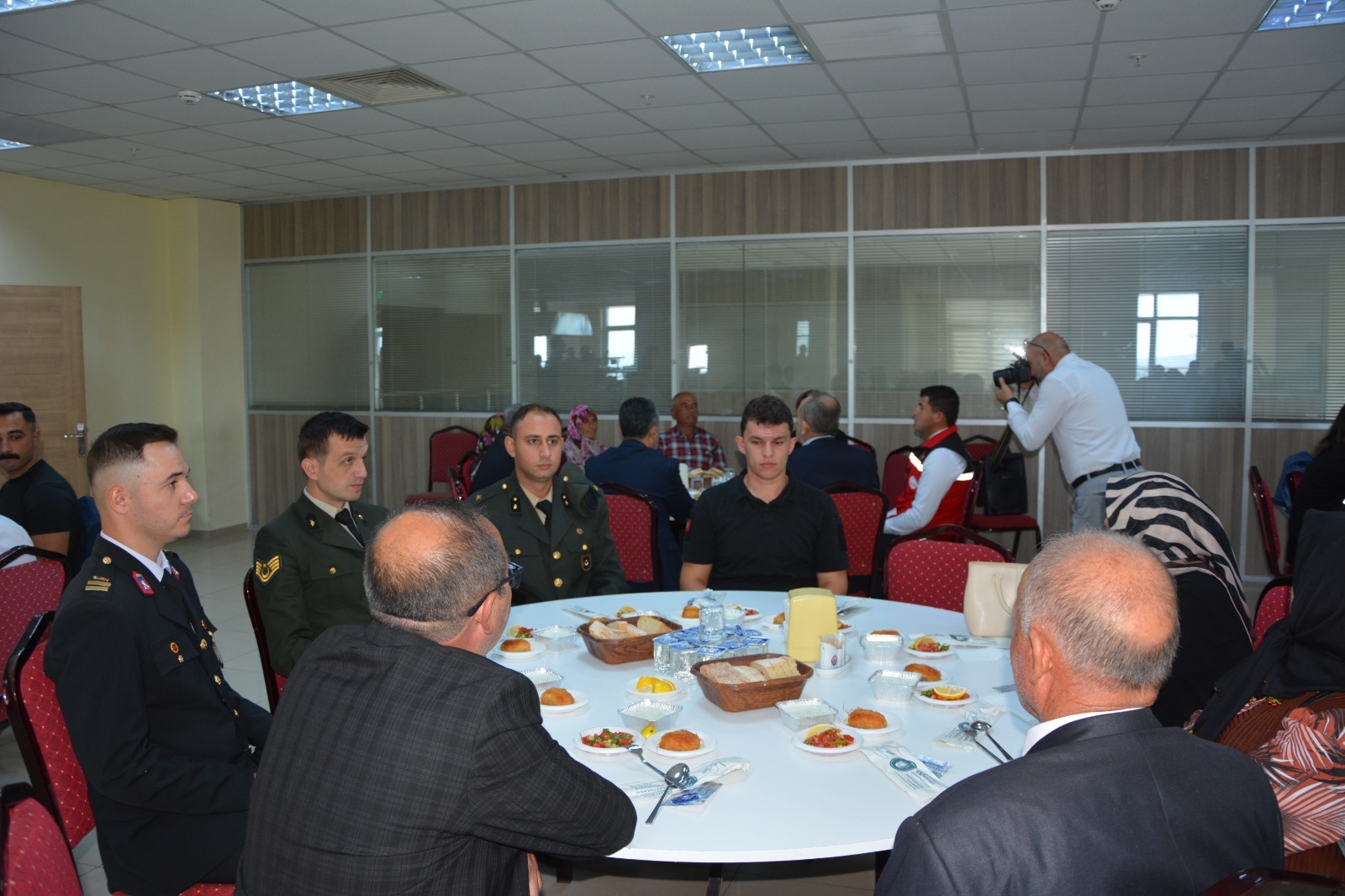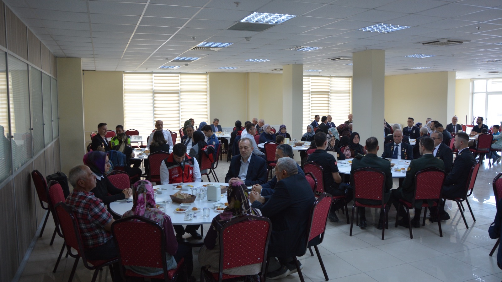 Yemek programında İlçe Müftüsü İbrahim Sağlam tarafından Şehitlerimiz ve ebediyete intikal eden gazilerimiz için Kuran-ı Kerim ve dualar okundu.