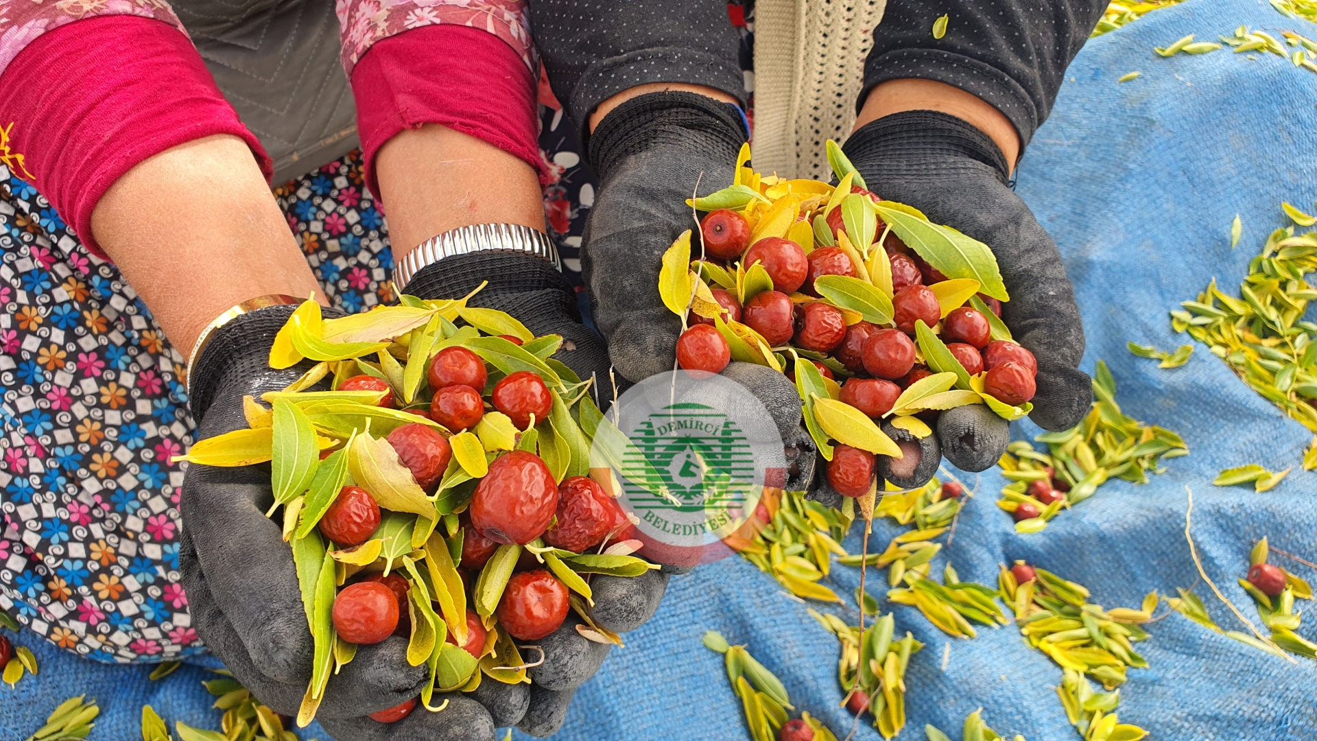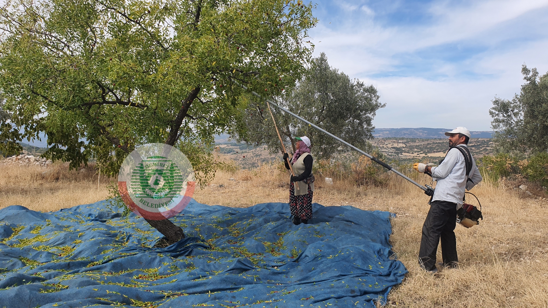 Türkiye'nin önde gelen hünnap üretim merkezlerinden Demirci’de üreticiler sabahın erken saatlerinde tarlalarına giderek silkme makinesi ve sırıklarla hünnaplarını ağaç diplerine serdikleri örtülere topluyorlar.