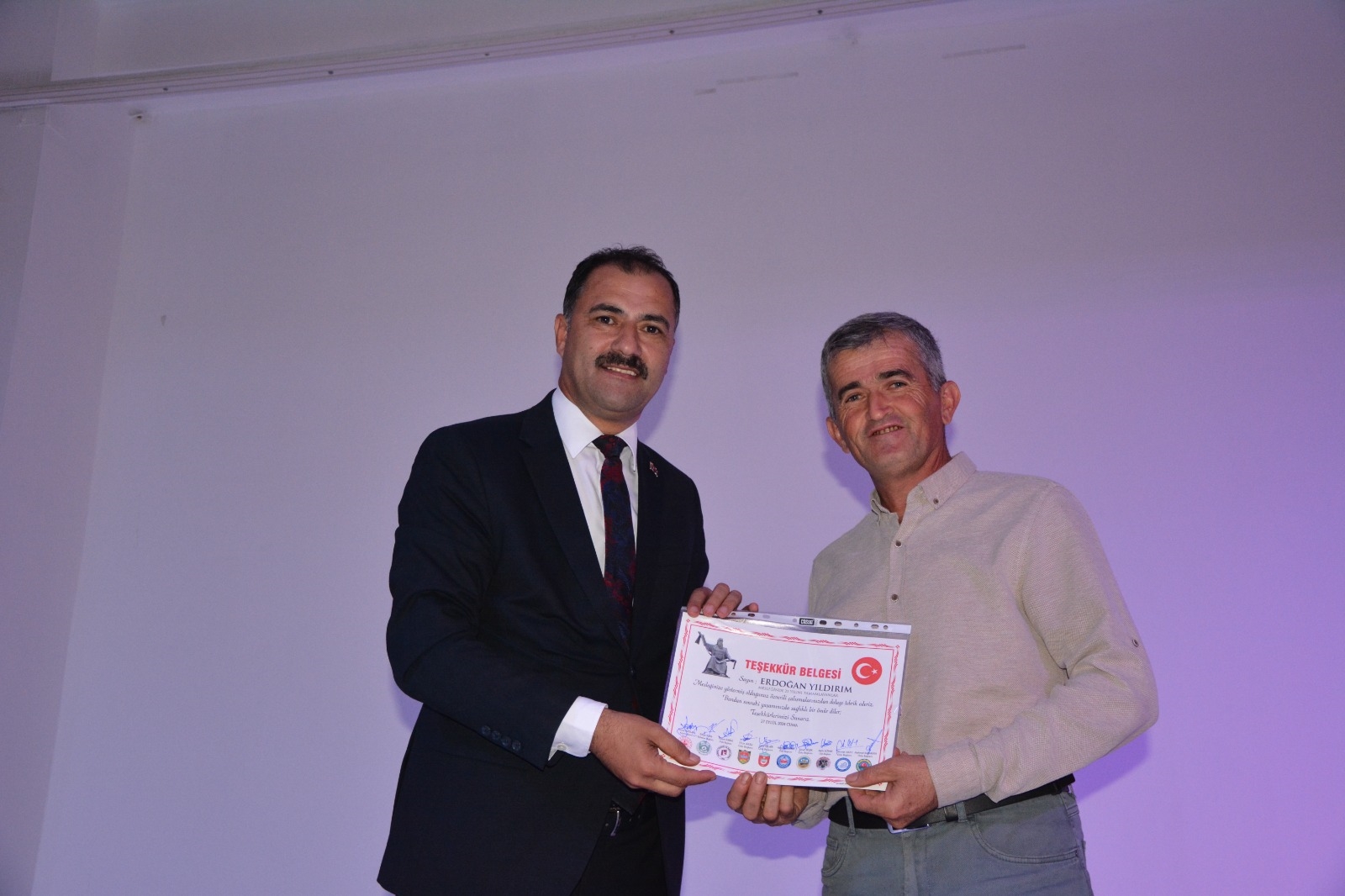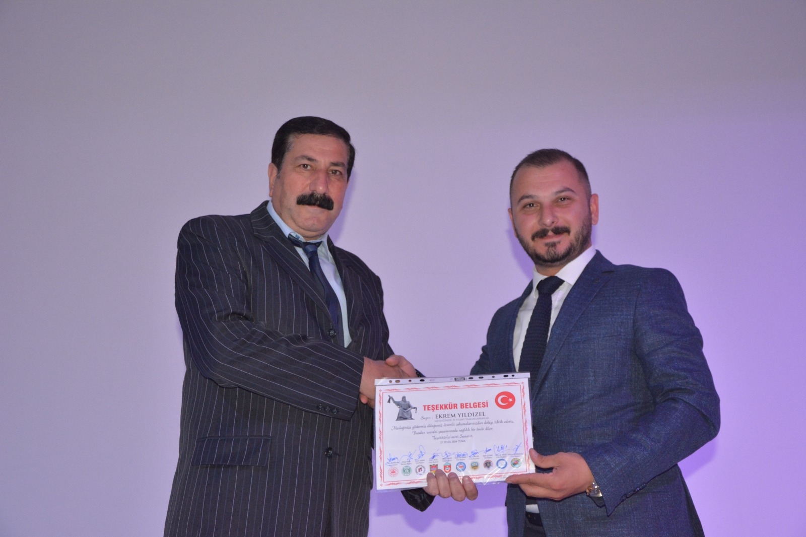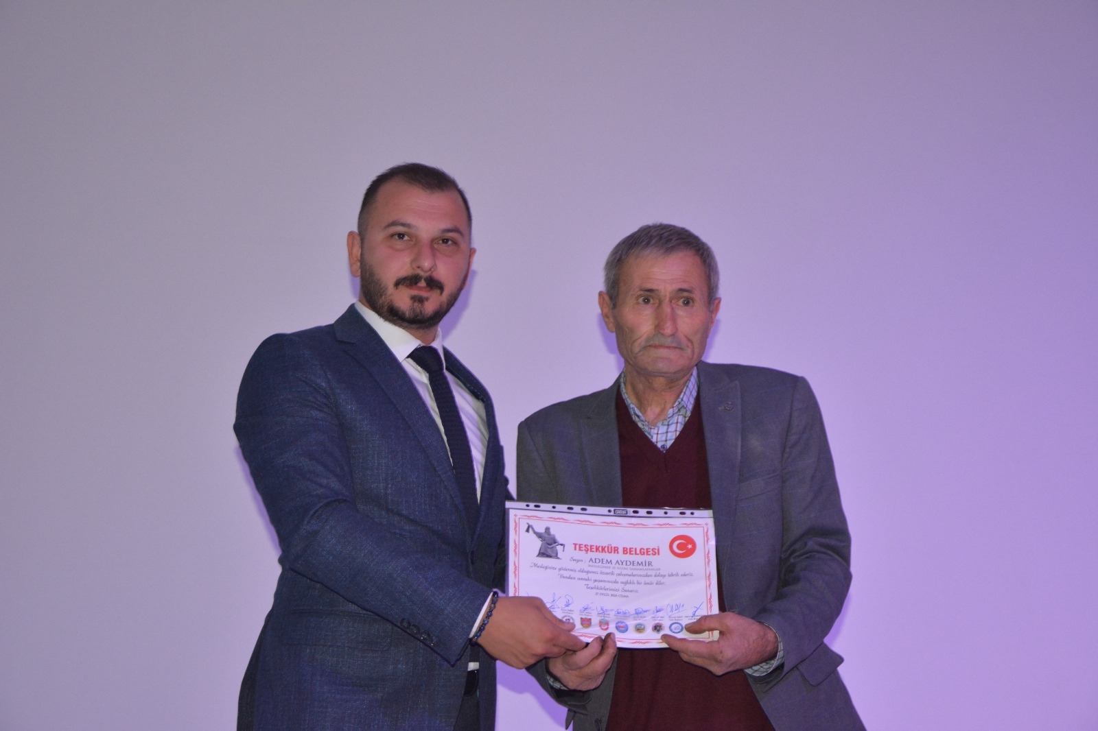 Tiyatro gösterisinin ardından Kaymakamımız Yavuz Arslan, Başkanımız Erkan Kara ve Oda Başkanları tarafından mesleğinde 25 yılını tamamlayanlara, kadın ve gen girişimcilere belgeleri takdim edildi.