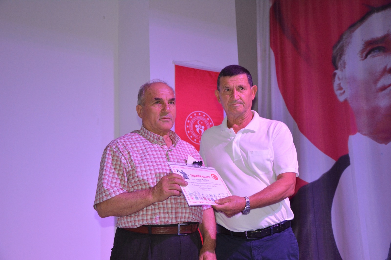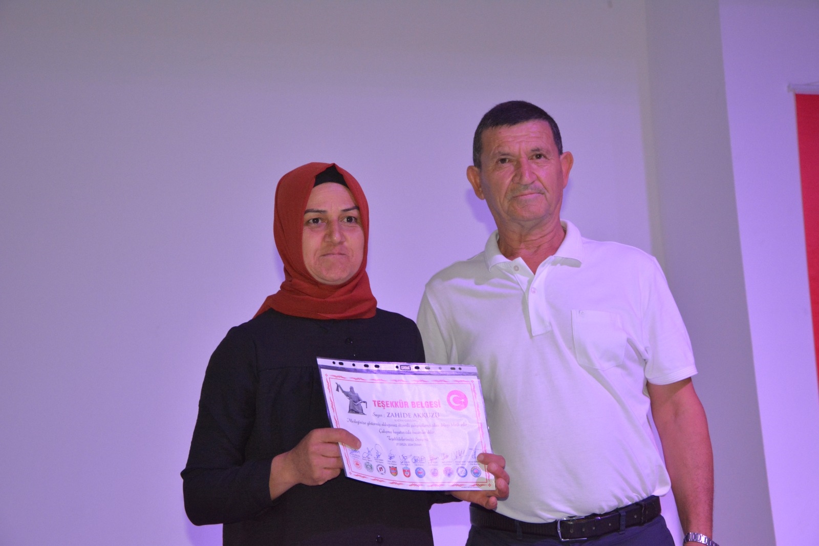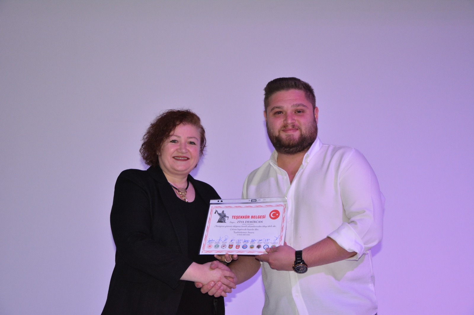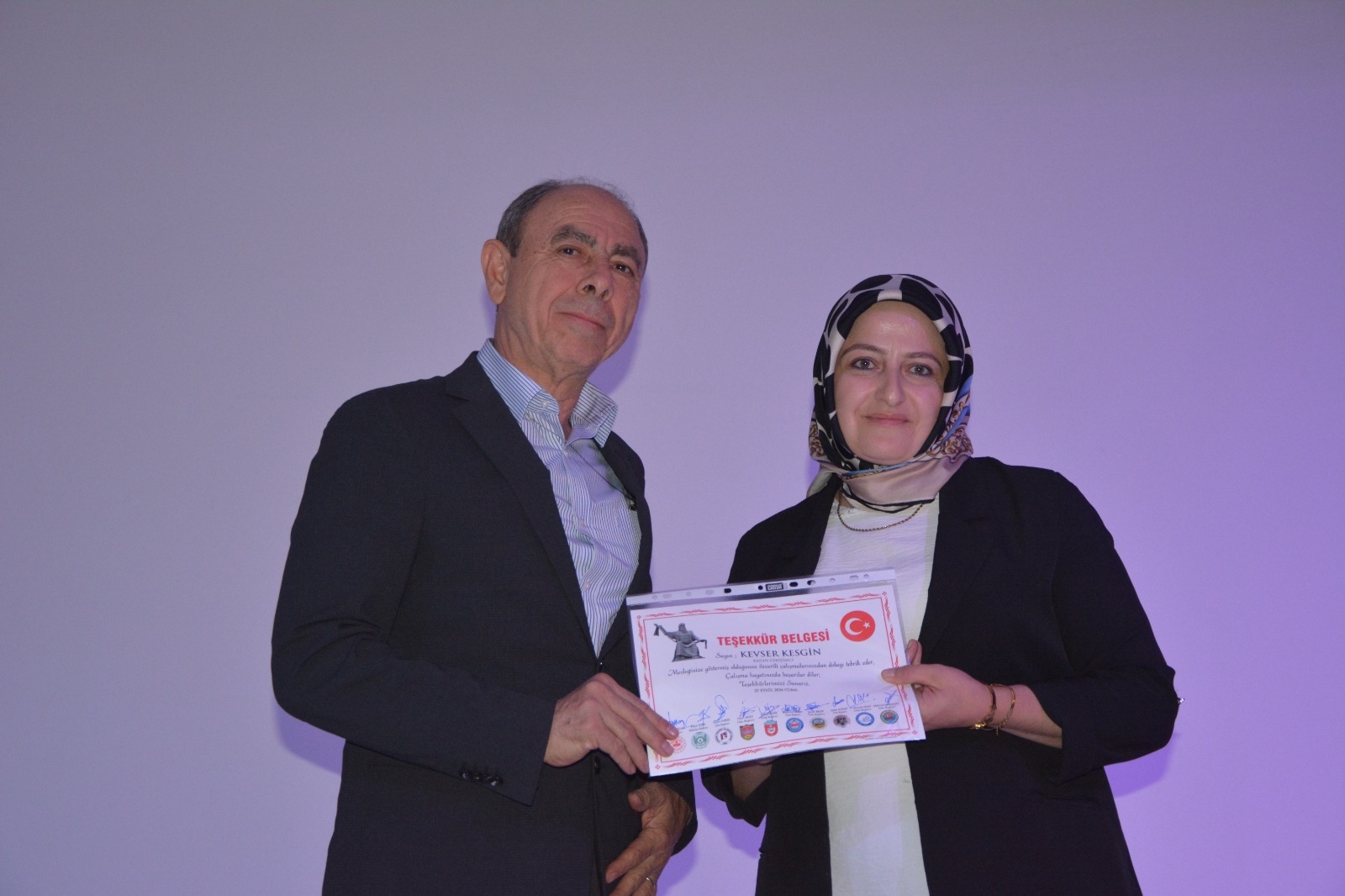 Tiyatro gösterisinin ardından Kaymakamımız Yavuz Arslan, Başkanımız Erkan Kara ve Oda Başkanları tarafından mesleğinde 25 yılını tamamlayanlara, kadın ve gen girişimcilere belgeleri takdim edildi.