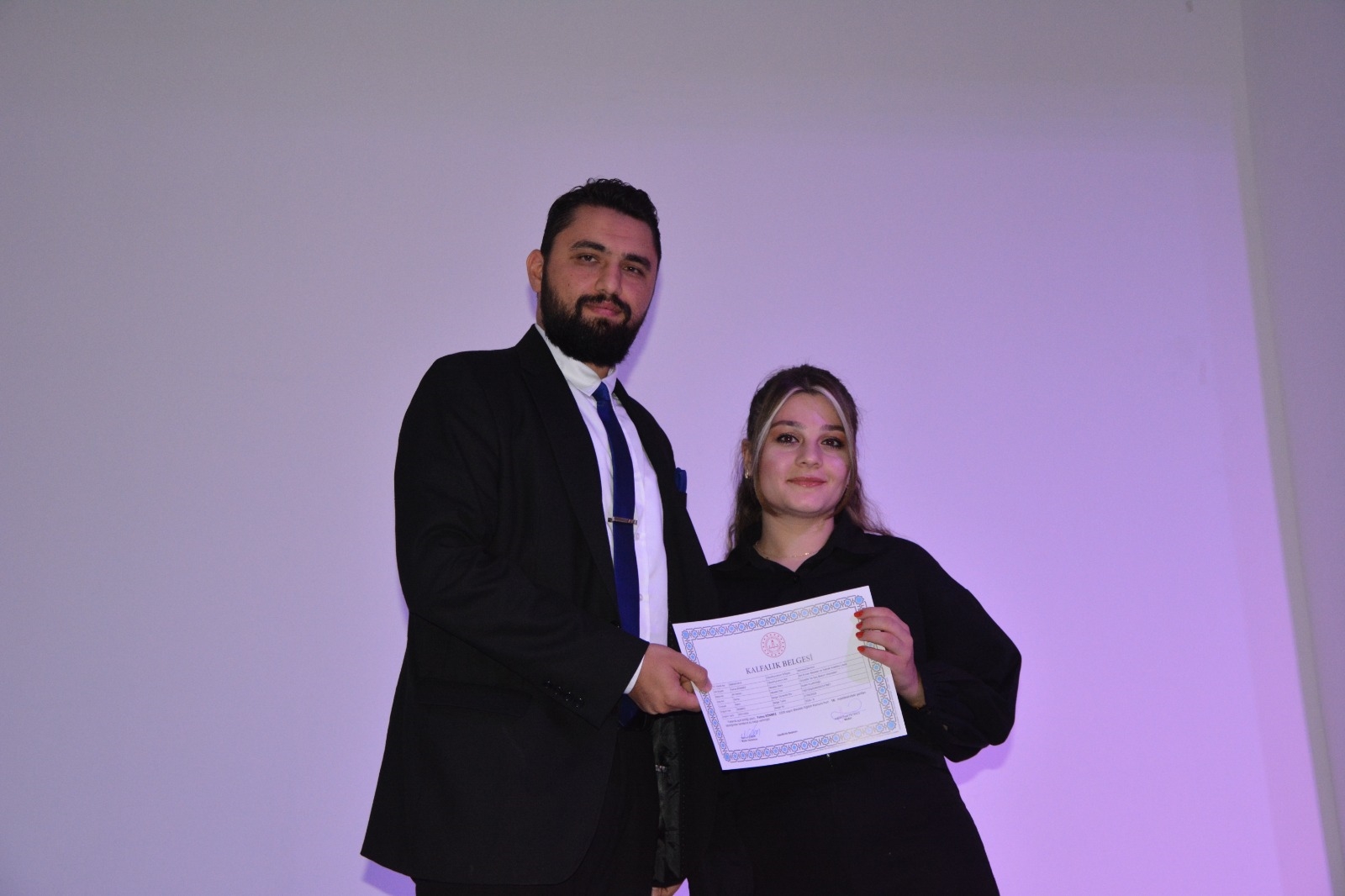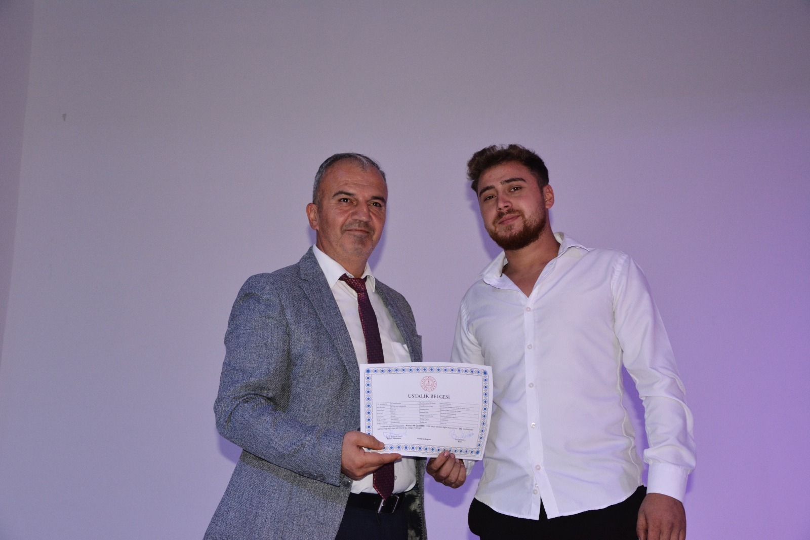 Ahi Evran Mesleki ve Teknik Anadolu Lisesi ve Gevher Nesibe Mesleki ve Teknik Anadolu Lisesinden kalfalık ve ustalık belgesi almayı hak kazananlara belgeleri Kaymakamımız Yavuz Arslan, Belediye Başkanımız Erkan Kara, İlçe Milli Eğitim Müdürü Bilal Çetinkaya ve Ahi Evran Mesleki ve Teknik Anadolu Lisesi Müdürü Ahmet Raşit Petekçi tarafından verildi.