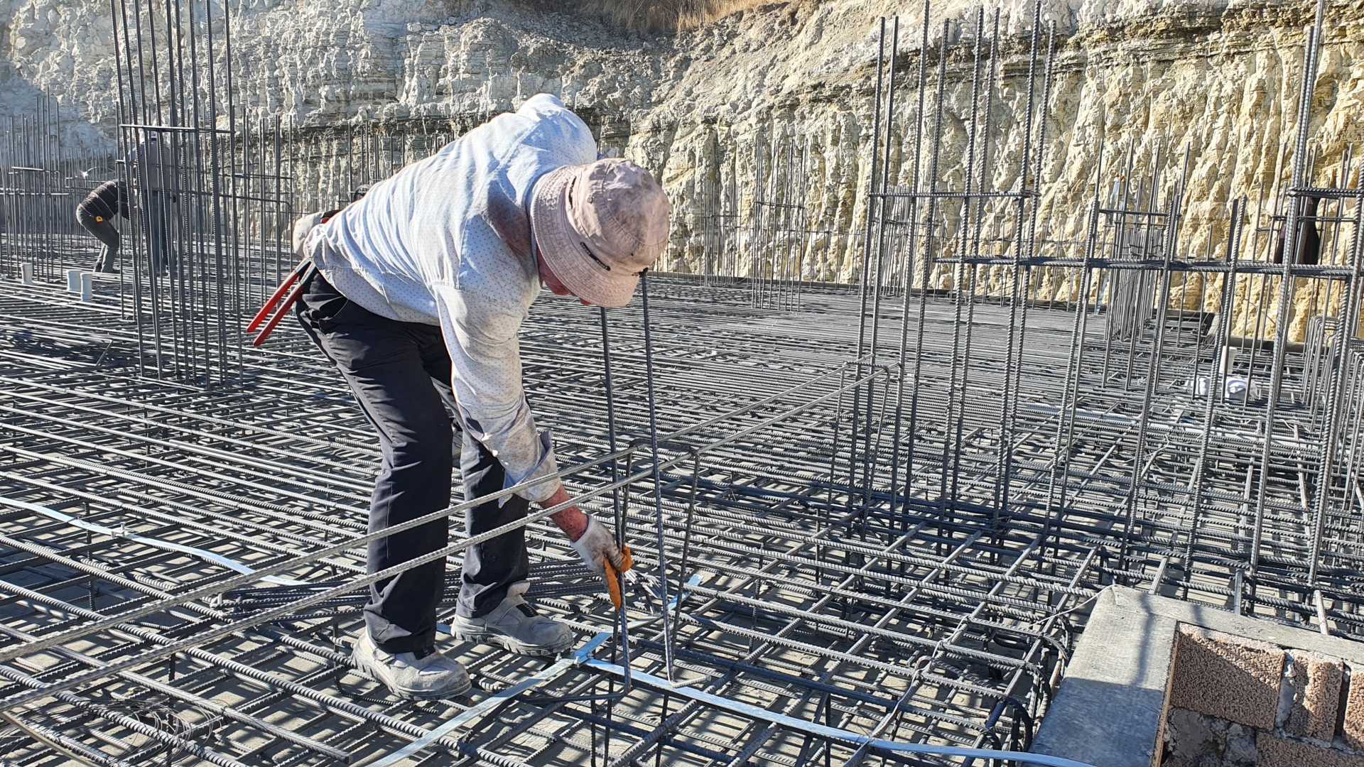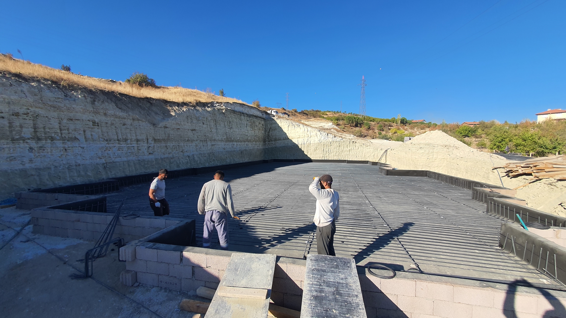 İlk bloğun bina temeli için demir bağlama çalışmaları tamamlanırken, 17 Ekim Perşembe günü temel betonu atılacak.