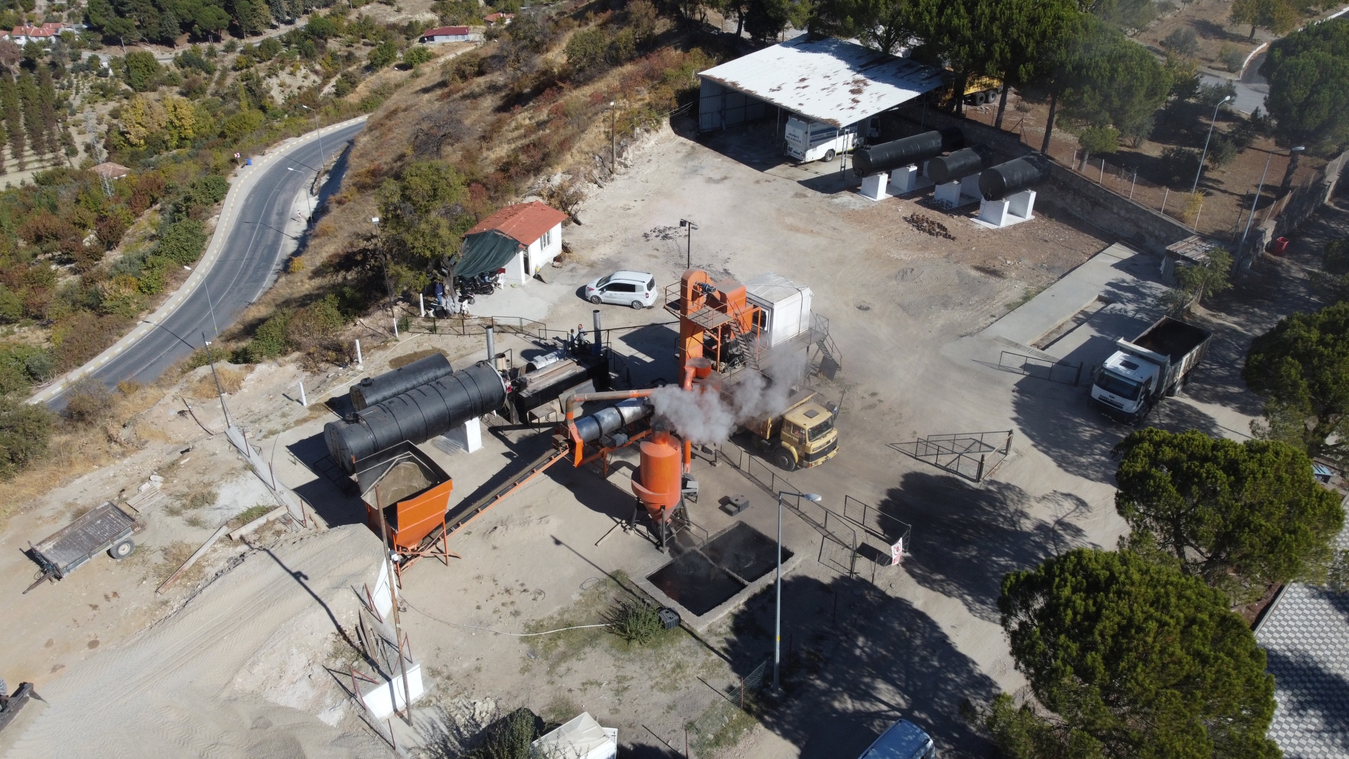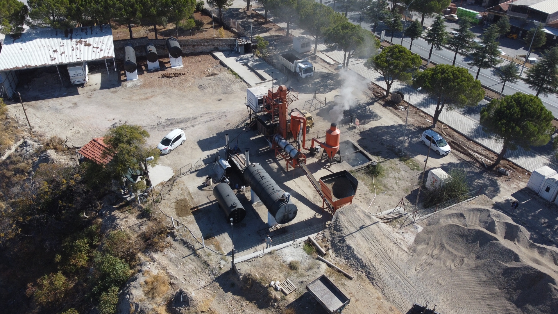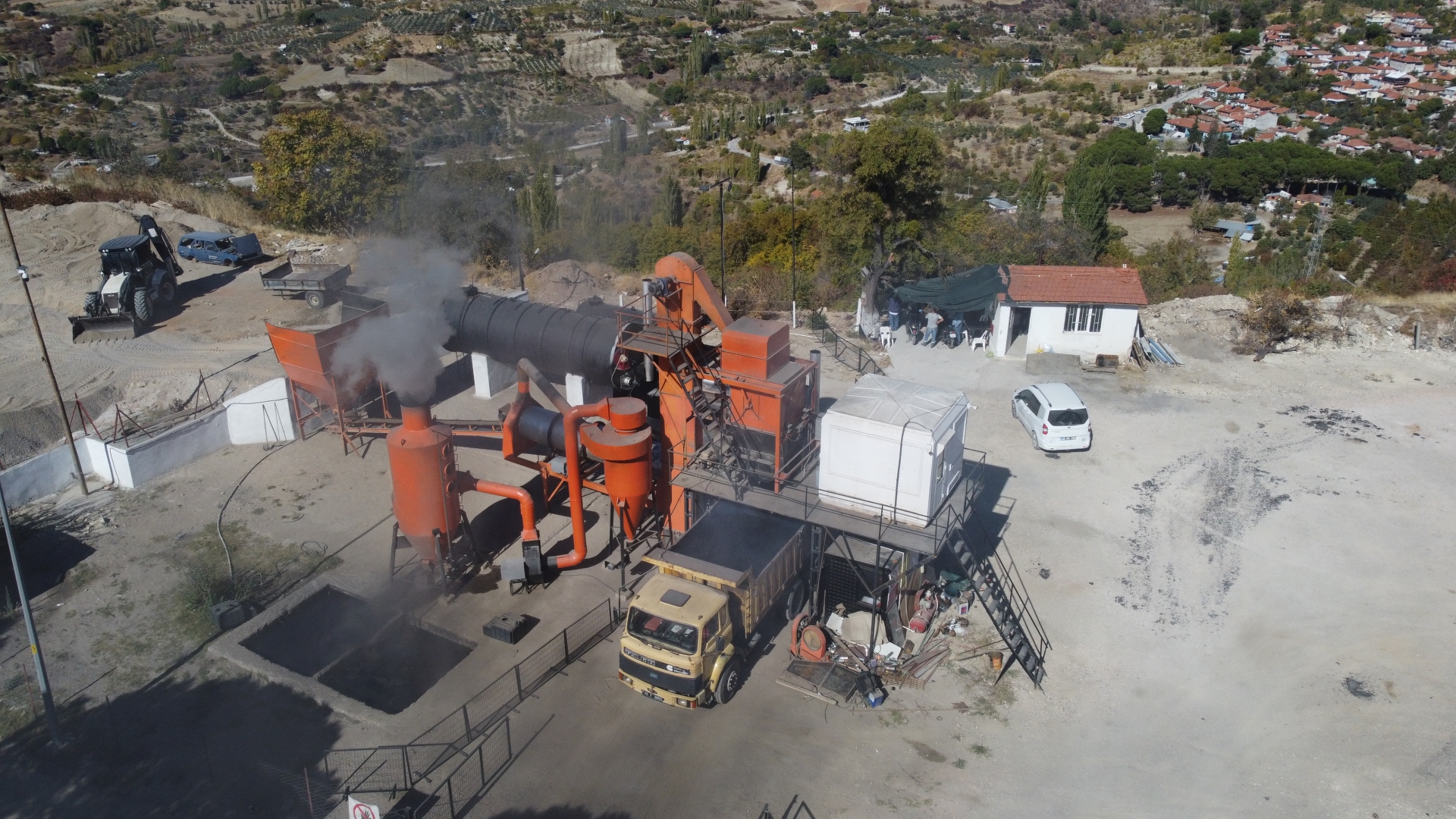 Asfalt plentinde hazırlanan malzeme iş makineleri ile zemini düzlenerek hazırlanan yollara serimi yapılıyor.