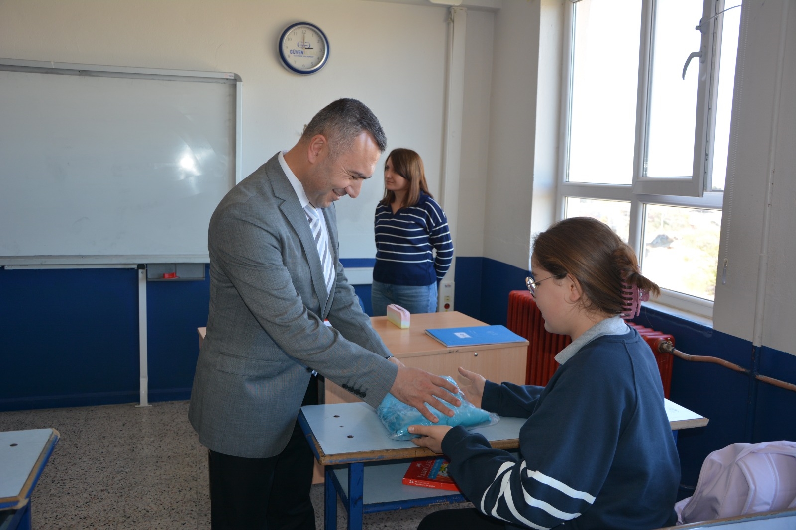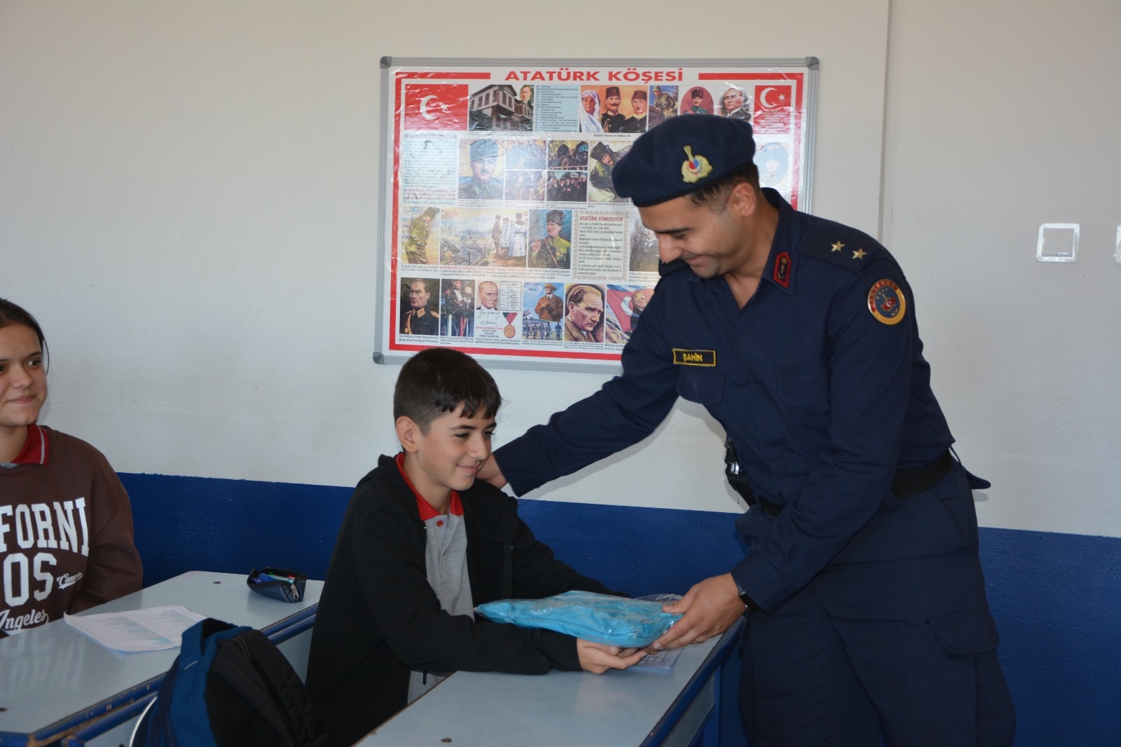 Ziyarette Kaymakamımız Yavuz Arslan, Başkan Yardımcımız İsmail Hakkı Gül, İlçe Jandarma Komutanı Üsteğmen Uğurcan Şahin ve İlçe Milli Eğitim Müdürü Bilal Çetinkaya birlikte öğrenciler birlikte öğrencilere eşofman takımı hediye ettiler.