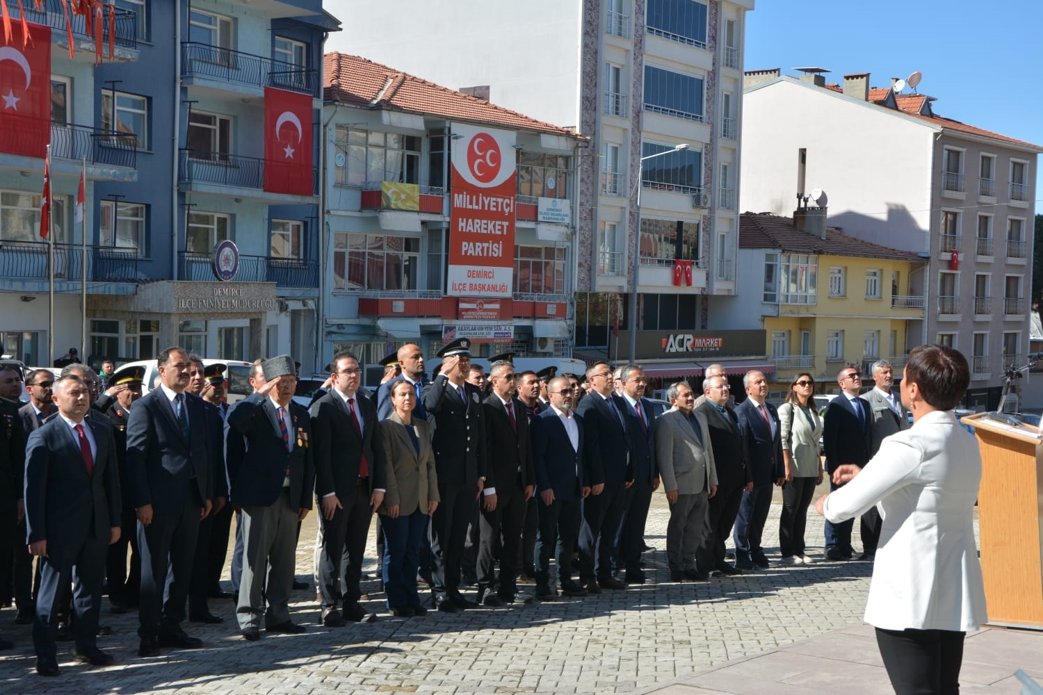 28 Ekim 2024 Pazartesi günü 15 Temmuz Demokrasi ve Şehitler Meydanı Atatürk anıtı önünde düzenlenen törene Demirci Kaymakamımız Yavuz Arslan, Belediye Başkanımız Erkan Kara, Cumhuriyet Başsavcısı Emre Aytaç, Eğitim Fakültesi Dekanı Prof. Dr. Fatma Şaşmaz Ören, Garnizon Komutanı Mly. Binbaşı Hüseyin Cihan Korkmaz, İlçe Jandarma Komutanı Üsteğmen Uğurcan Şahin, İlçe Emniyet Müdürü Barış Kayar, kurum müdürleri, siyasi parti ilçe başkanları, oda başkanları ve vatandaşlar katıldı.