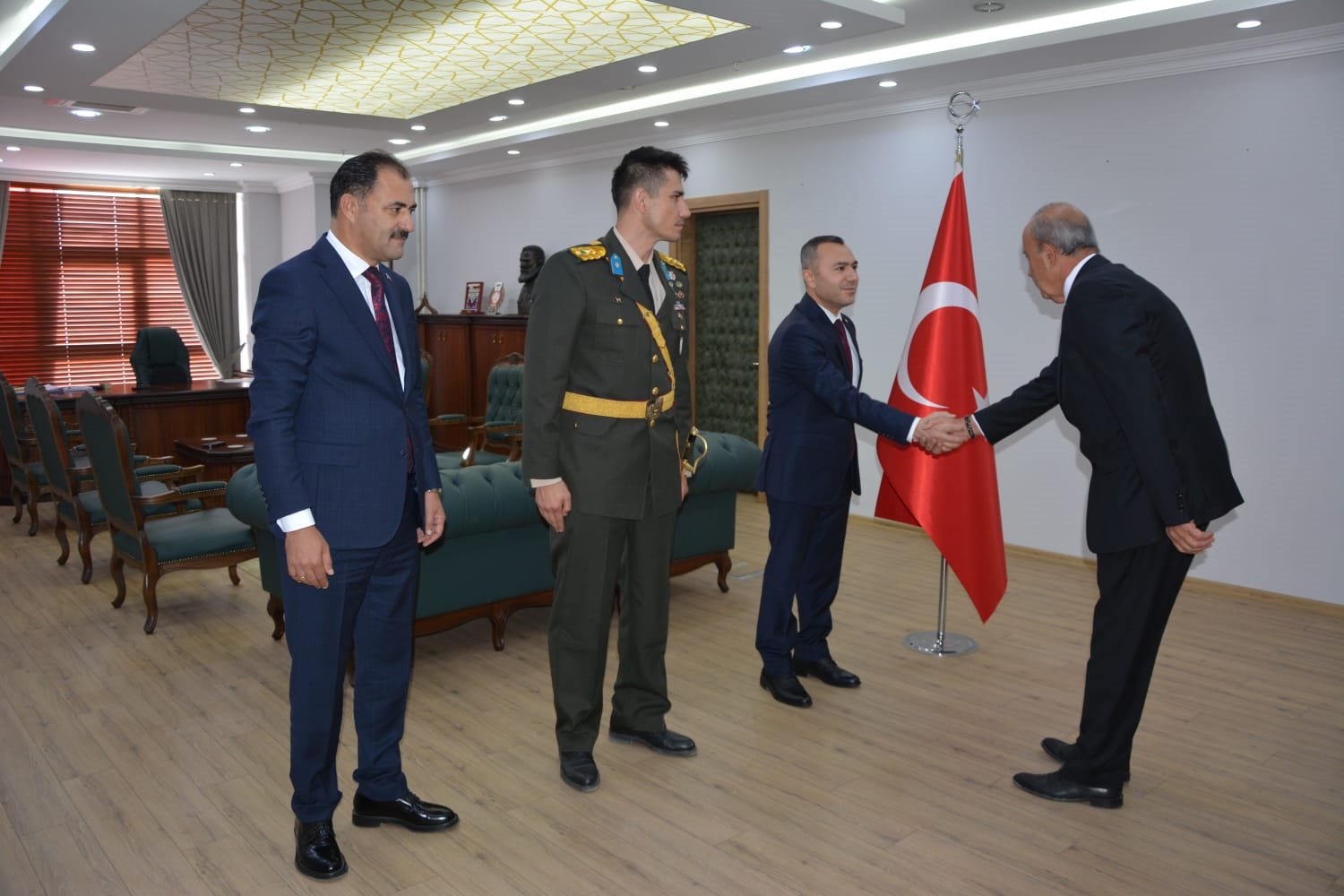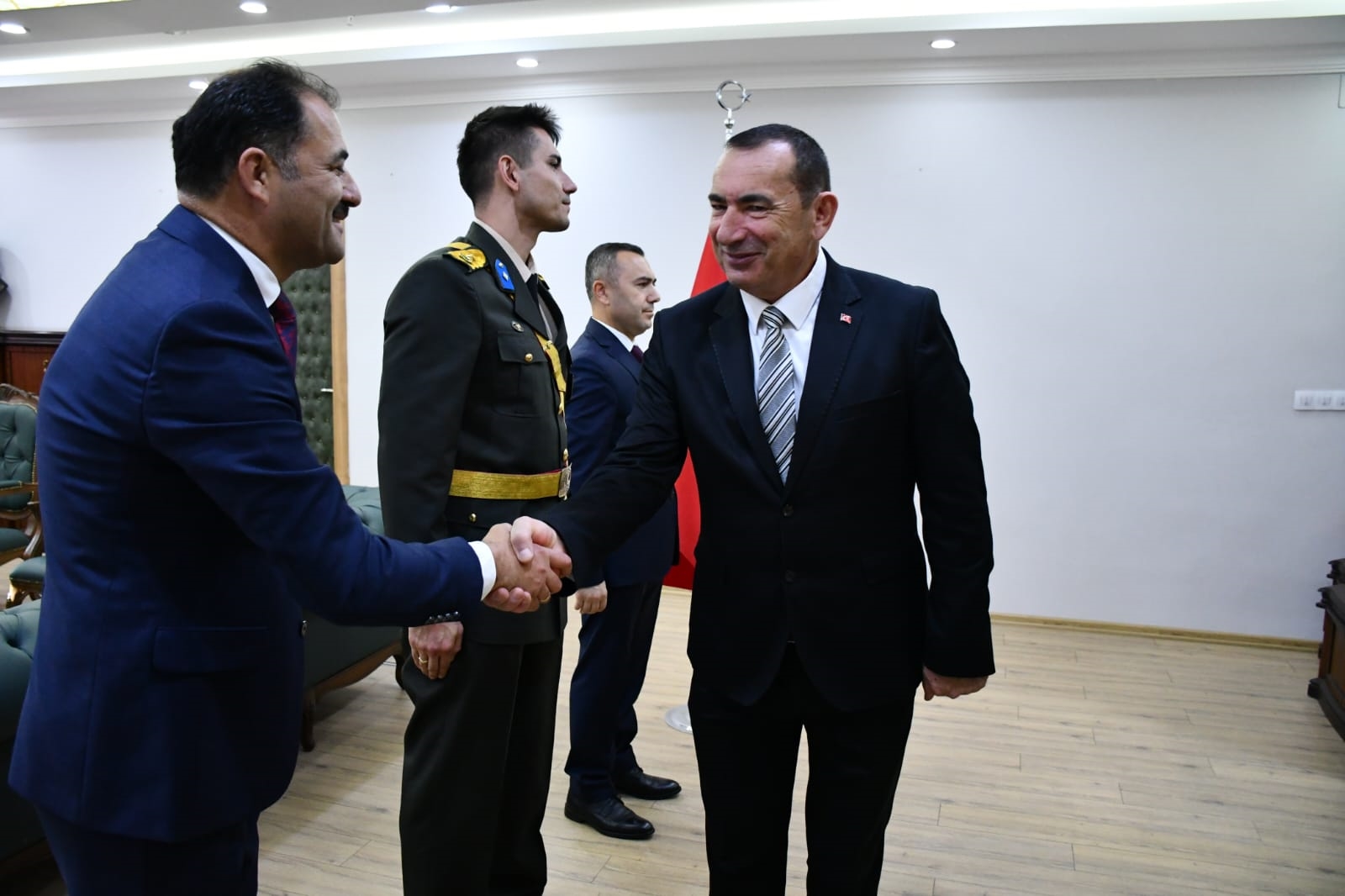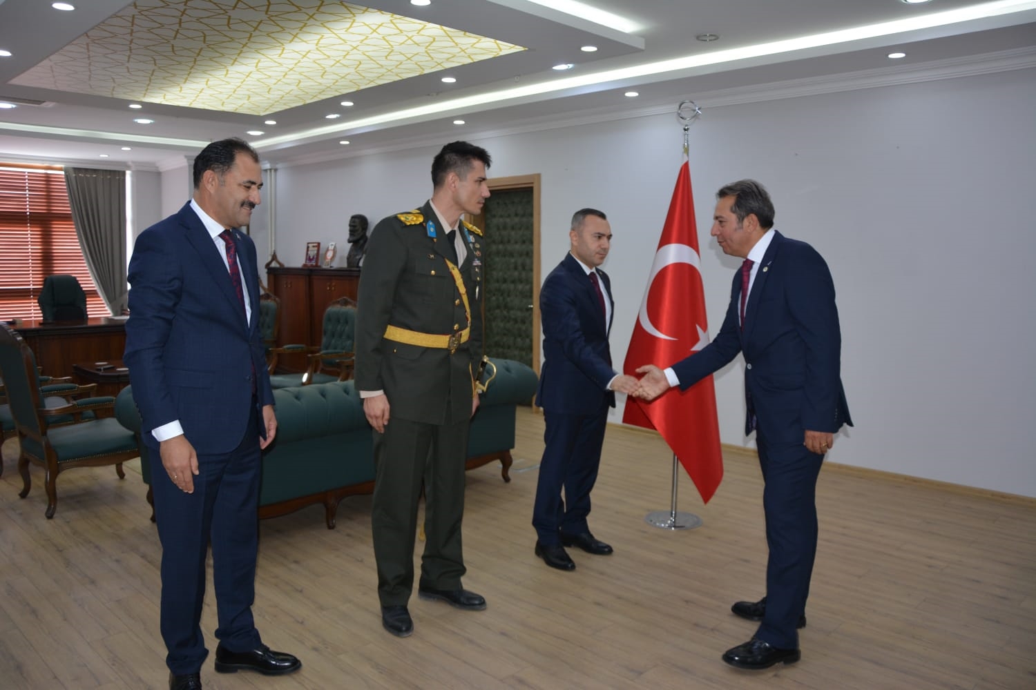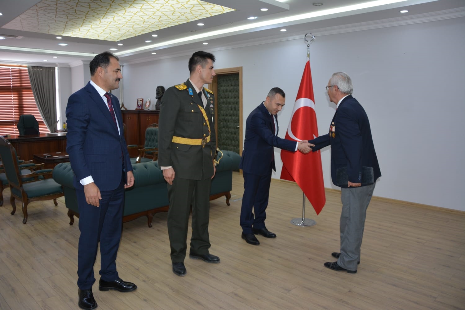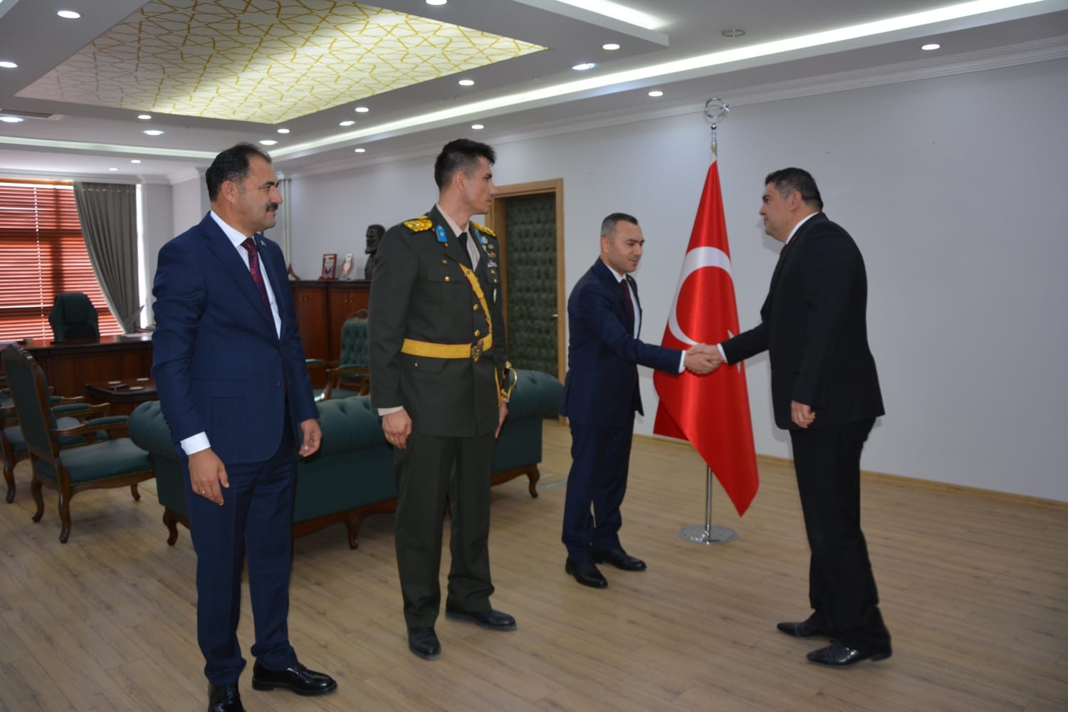 Kaymakamlık makamında düzenlenen tebrikat törenin ardından Kaymakamımız Yavuz Arslan, Garnizon Komutanı Mly. Binbaşı Hüseyin Cihan Korkmaz ve Belediye Başkanımız Erkan Kara törenlerin yapılacağı Kaymakam İbrahim Ethem Akıncı stadına geçiş yaptılar.