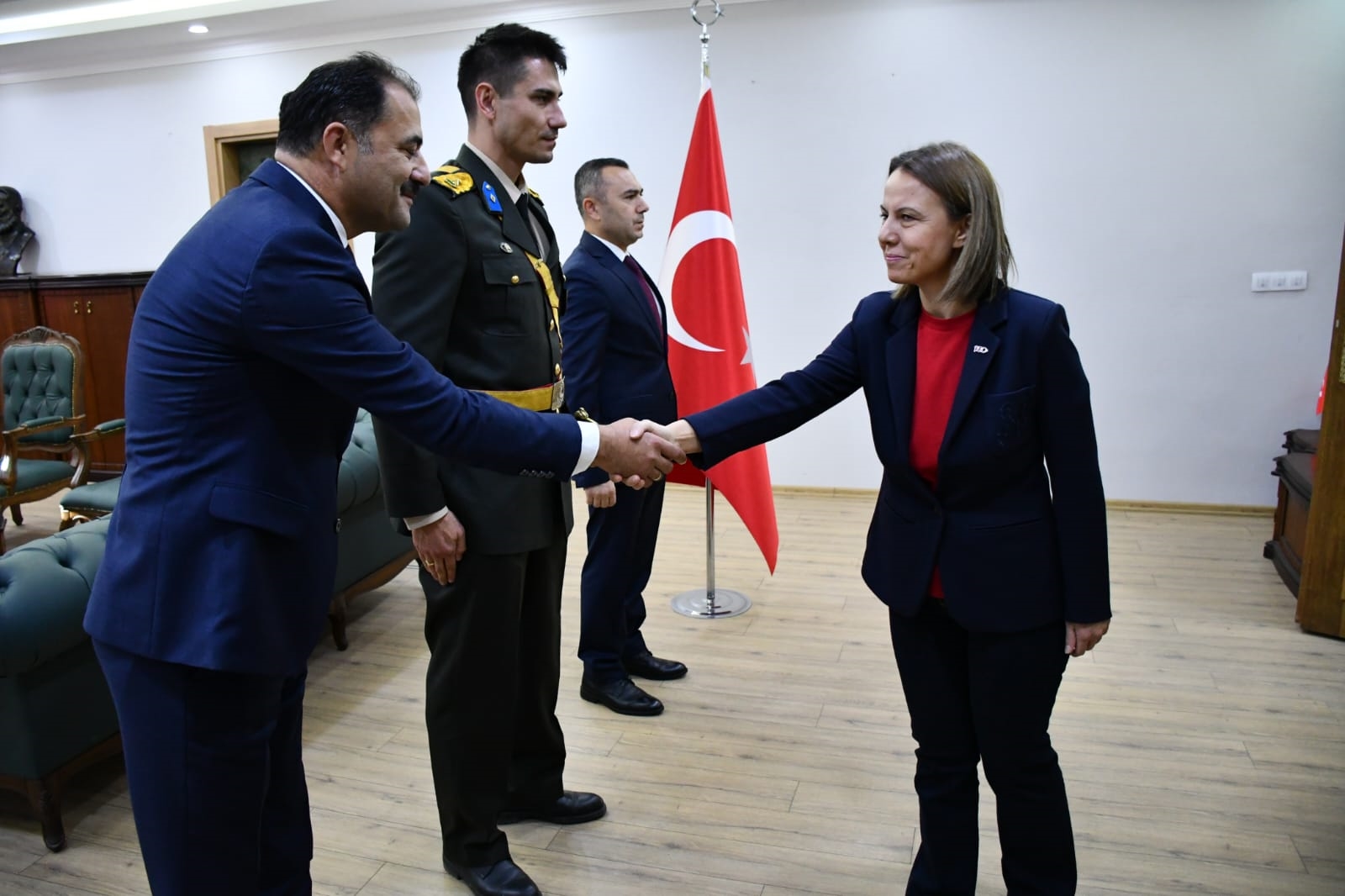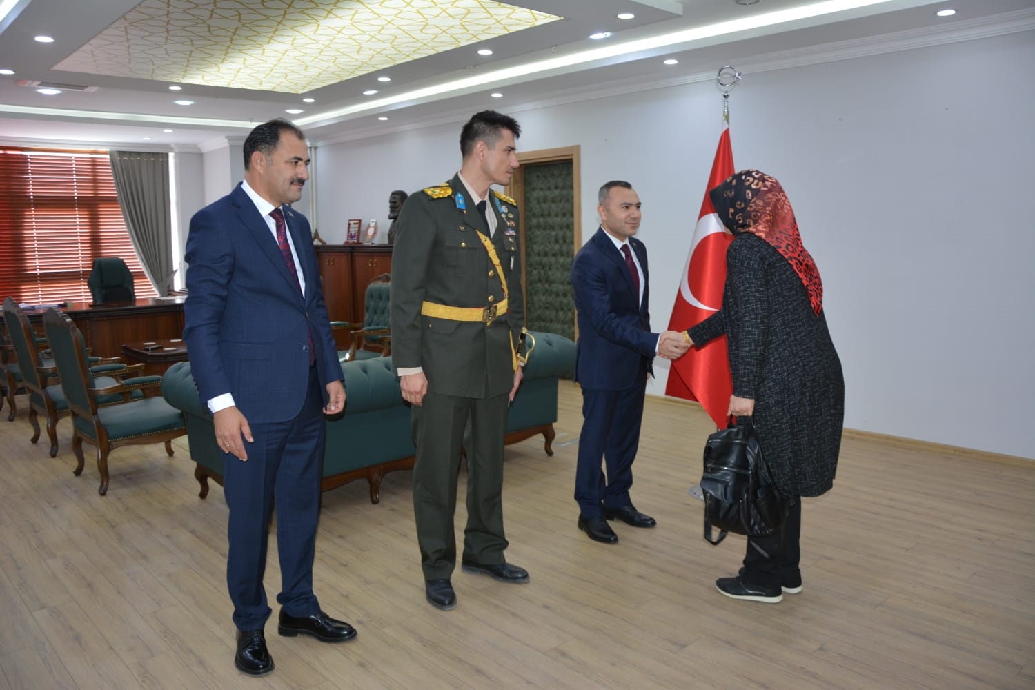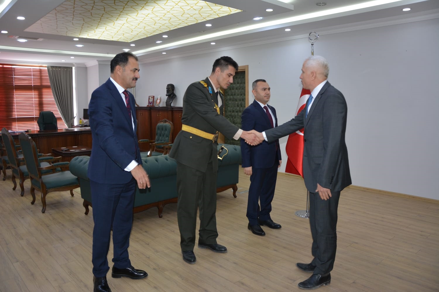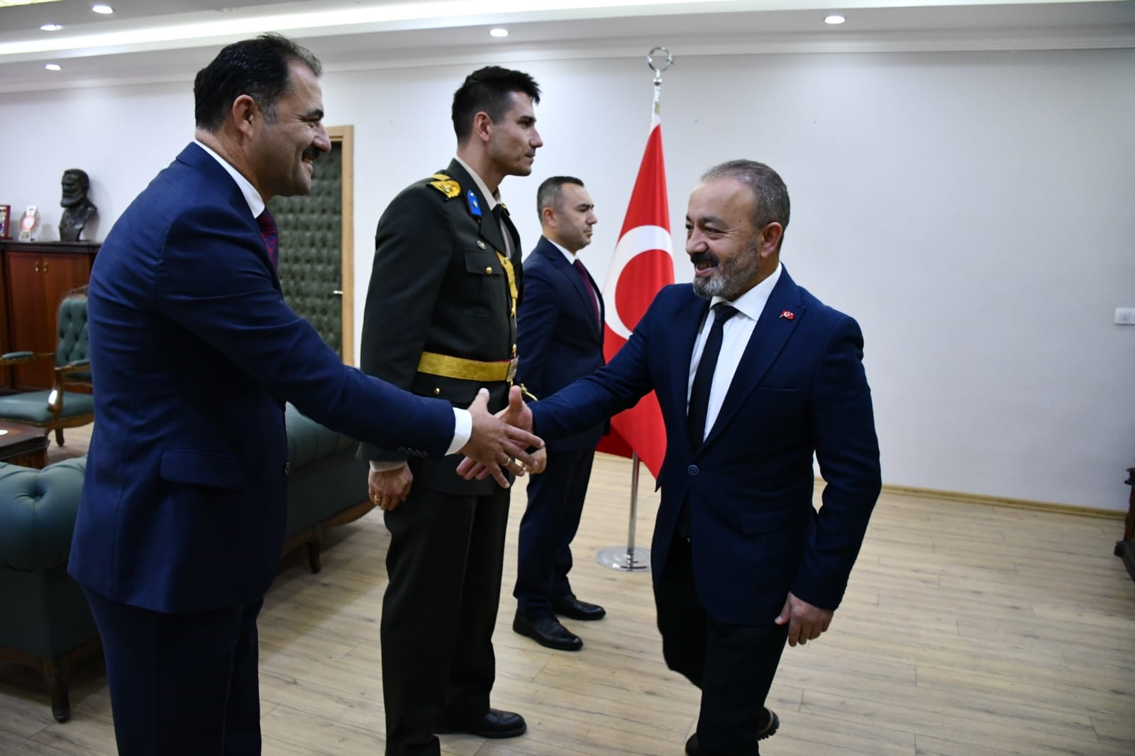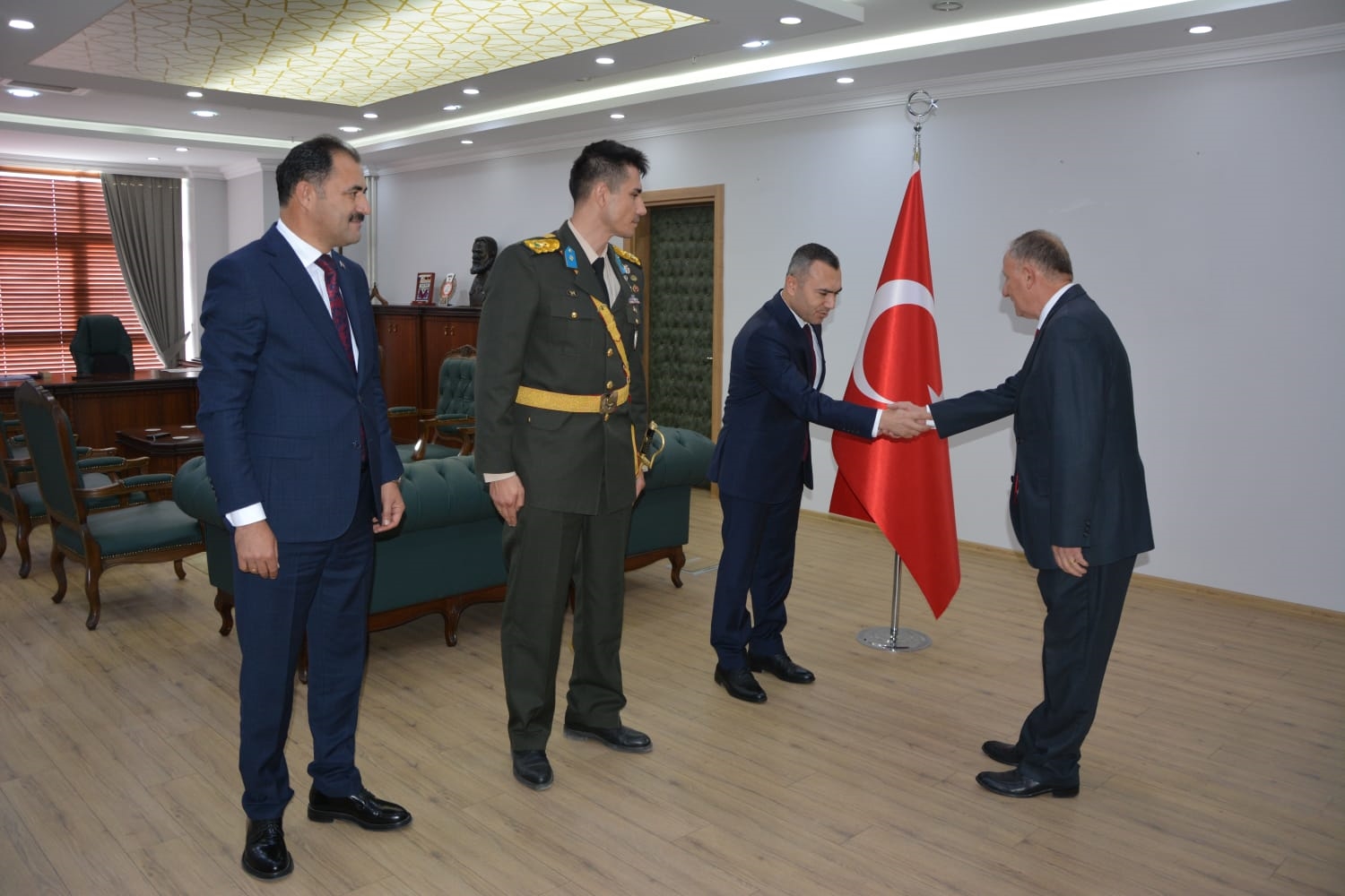 Kaymakamlık makamında düzenlenen tebrikat törenin ardından Kaymakamımız Yavuz Arslan, Garnizon Komutanı Mly. Binbaşı Hüseyin Cihan Korkmaz ve Belediye Başkanımız Erkan Kara törenlerin yapılacağı Kaymakam İbrahim Ethem Akıncı stadına geçiş yaptılar.