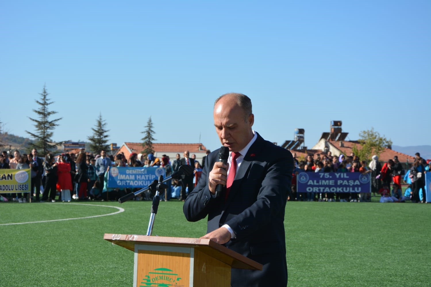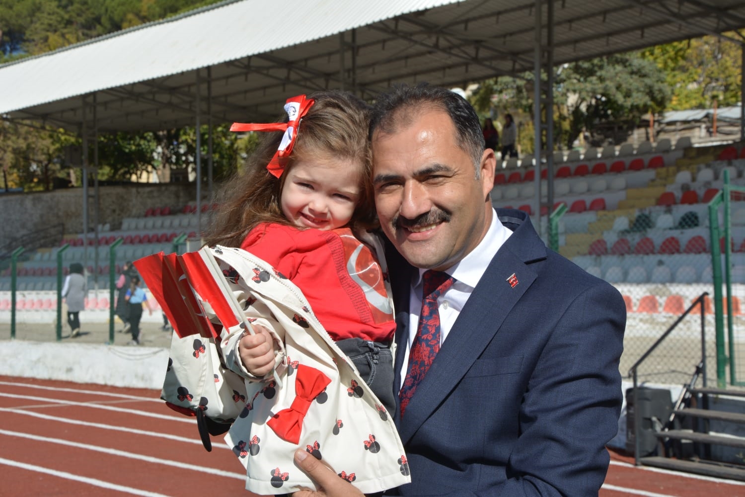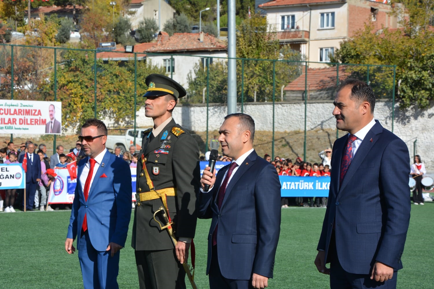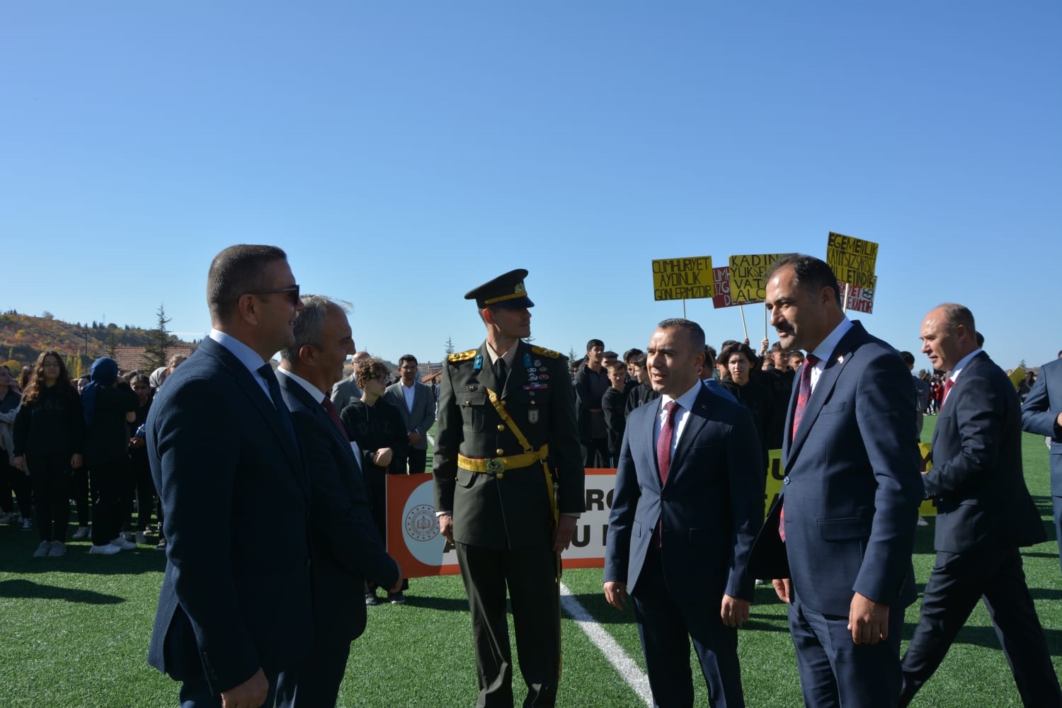 Kaymakam İbrahim Ethem Akıncı stadında düzenlenen törende Kaymakamımız Yavuz Arslan, Garnizon Komutanı Mly. Binbaşı Hüseyin Cihan Korkmaz ve Belediye Başkanımız Erkan Kara öğrencilerin ve halkın bayramını kutladılar.