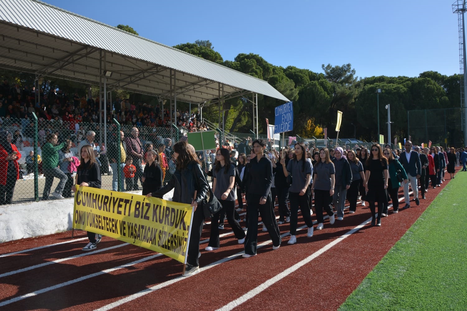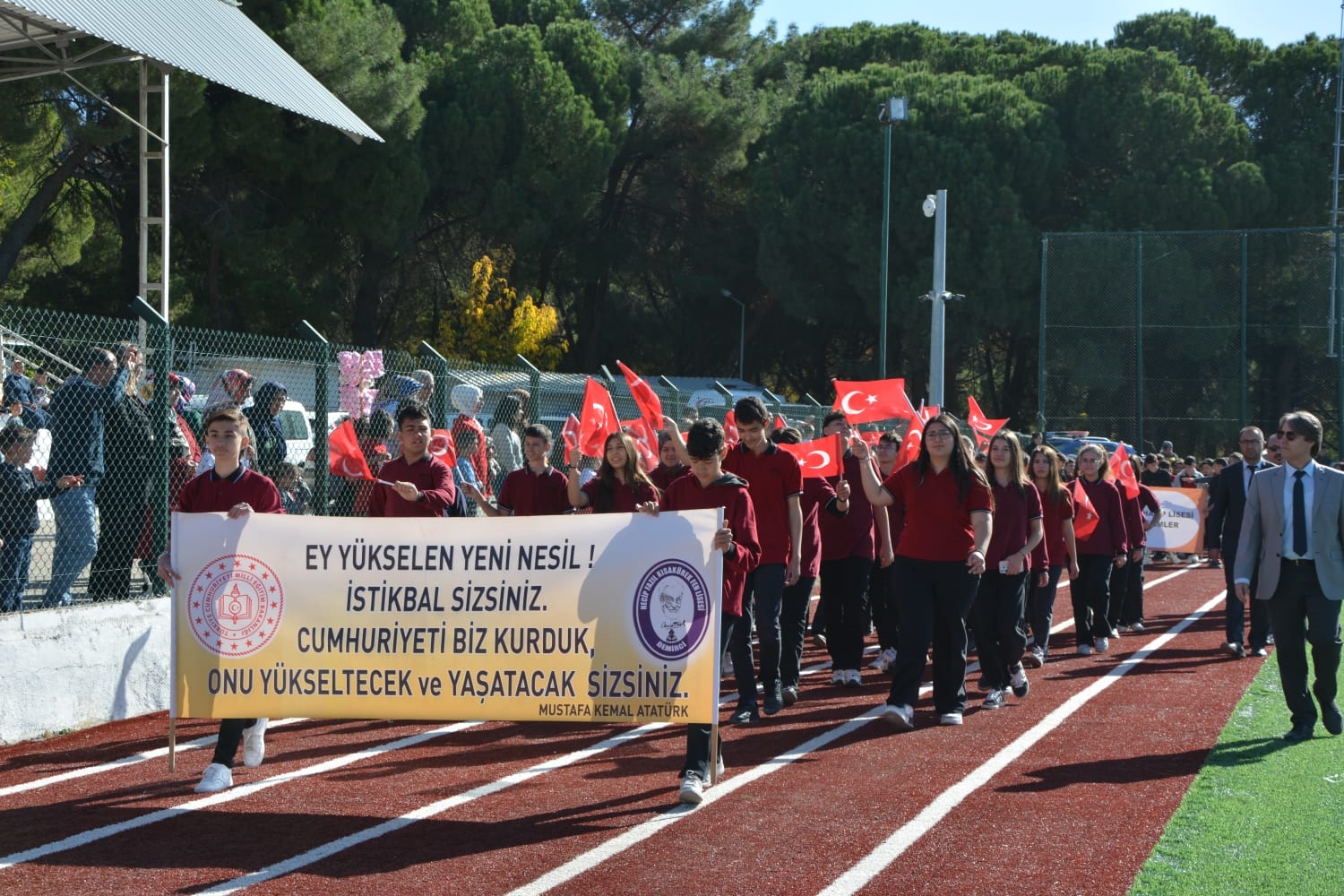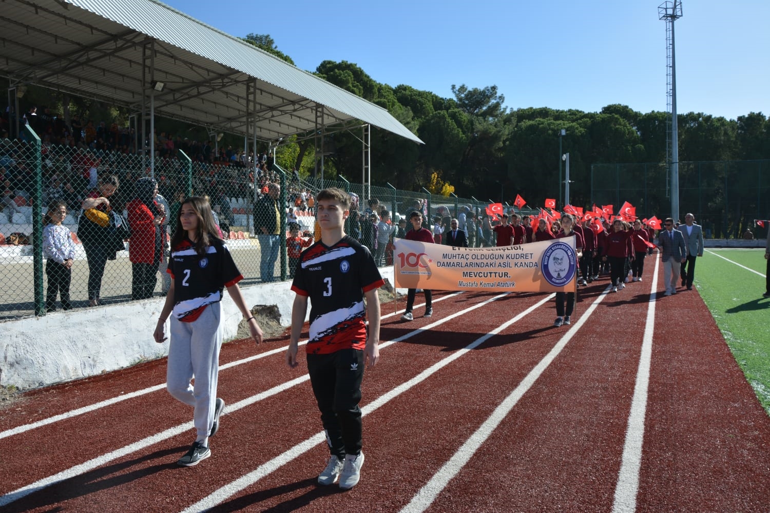 Milli Eğitim Müdürlüğü koordinasyonunda Anadolu Lisesi tarafından düzenlenen Cumhuriyet Bayramı törenlerinde öğrenciler tarafından öğretmen marşı, bando gösterisi, keman ve halk oyunları sergilendi.