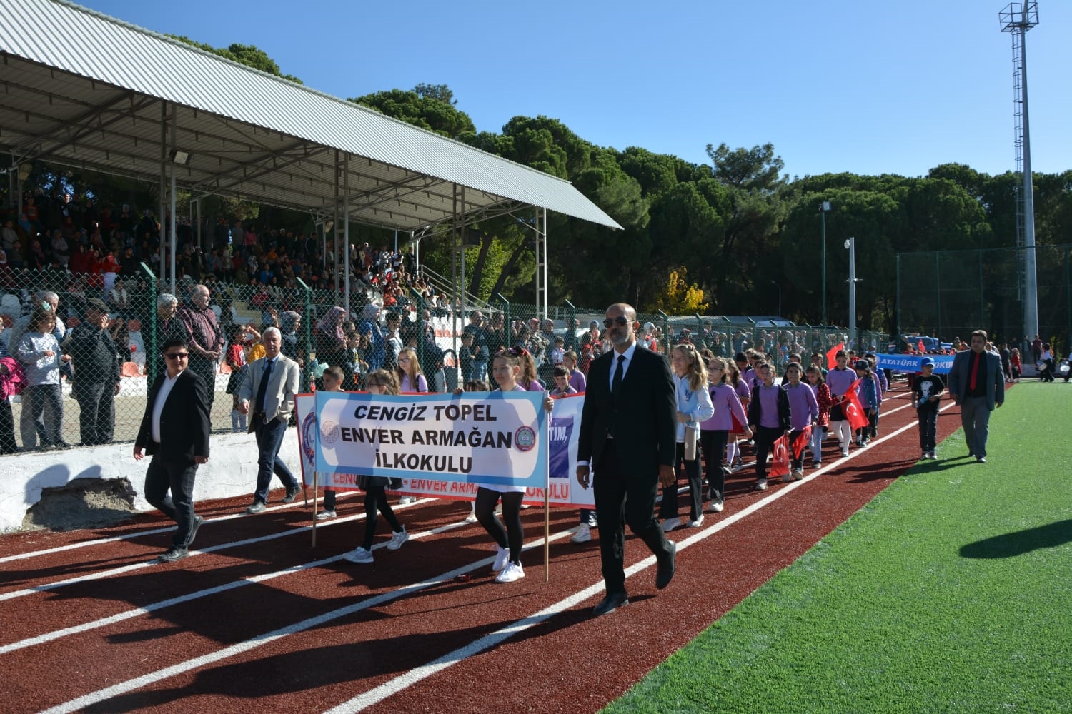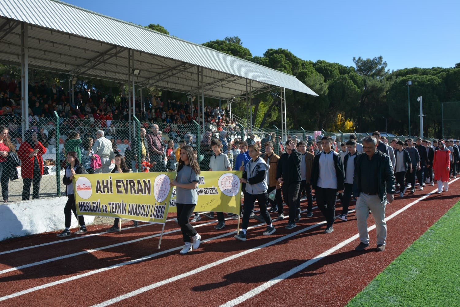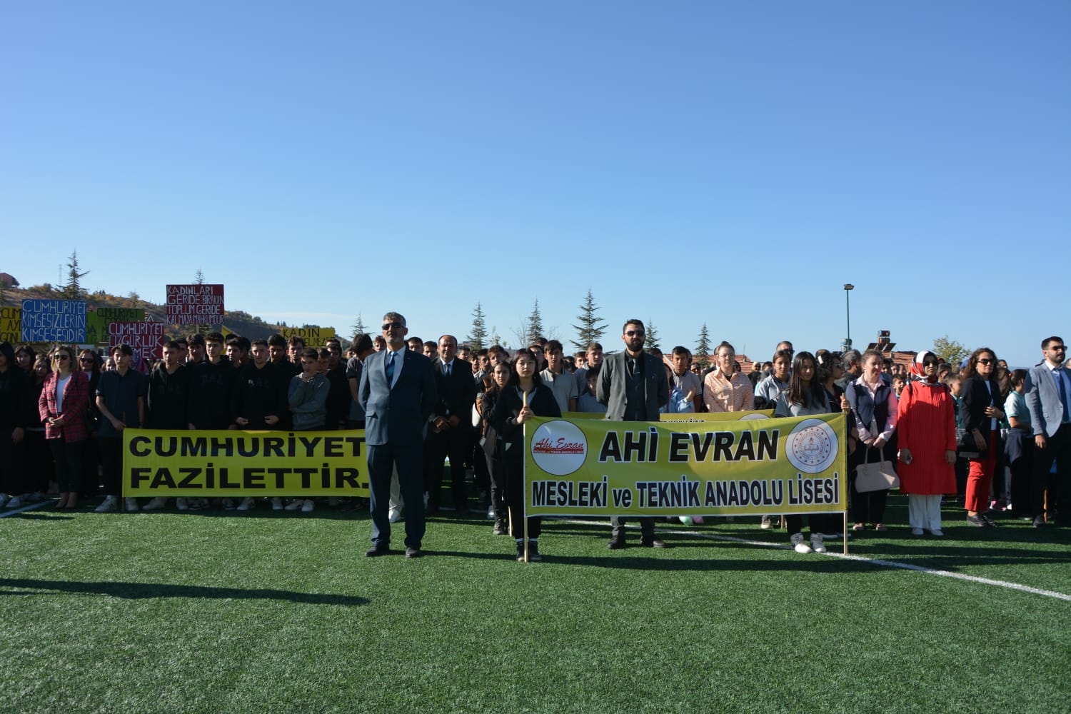 Milli Eğitim Müdürlüğü koordinasyonunda Anadolu Lisesi tarafından düzenlenen Cumhuriyet Bayramı törenlerinde öğrenciler tarafından öğretmen marşı, bando gösterisi, keman ve halk oyunları sergilendi.