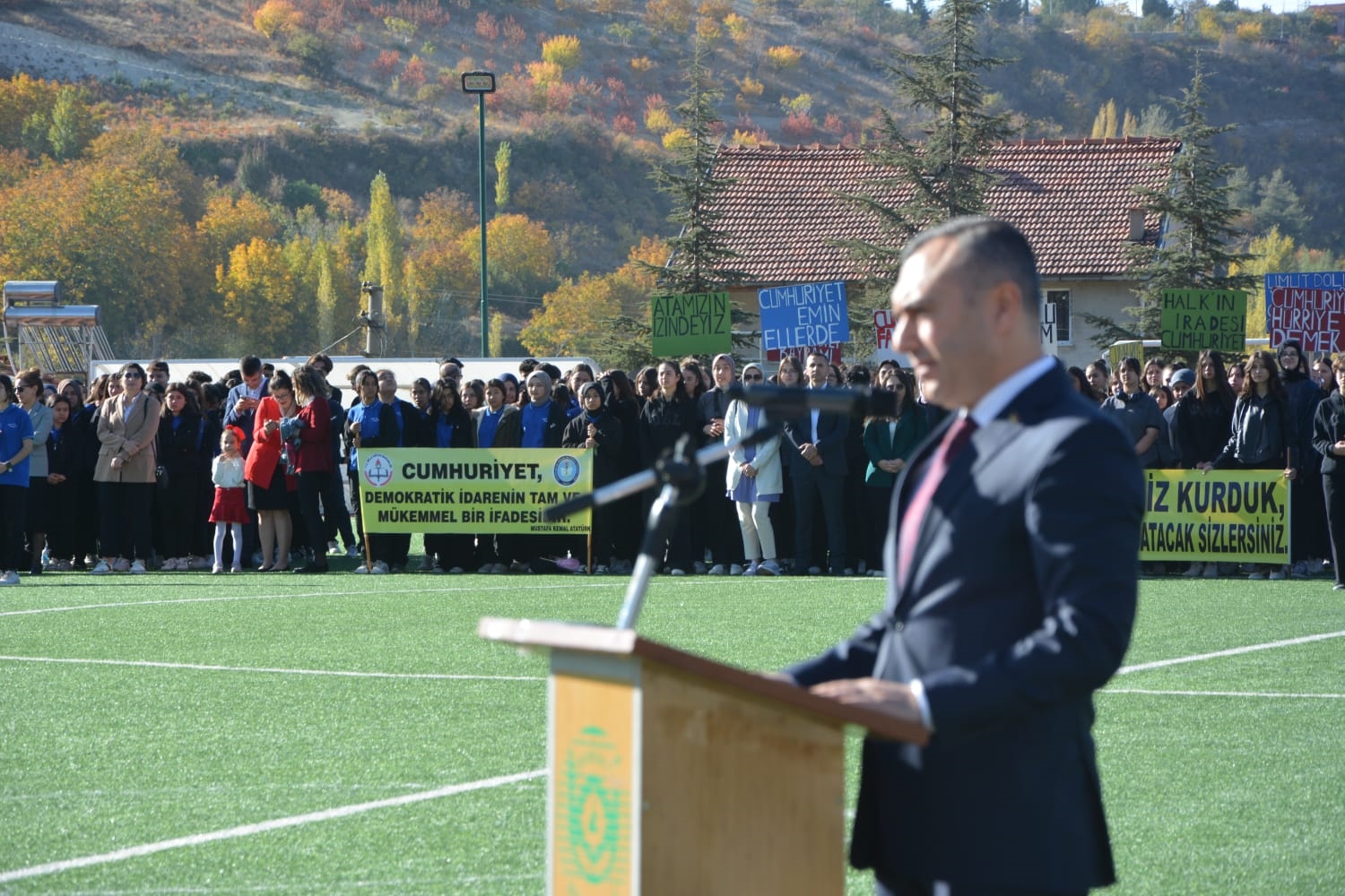 Cumhuriyet bayramı törenleri kapsamında Kaymakamımız Yavuz Arslan günün anlam ve önemini belirten konuşmasının ardından öğrenciler şiirlerini okudular.
