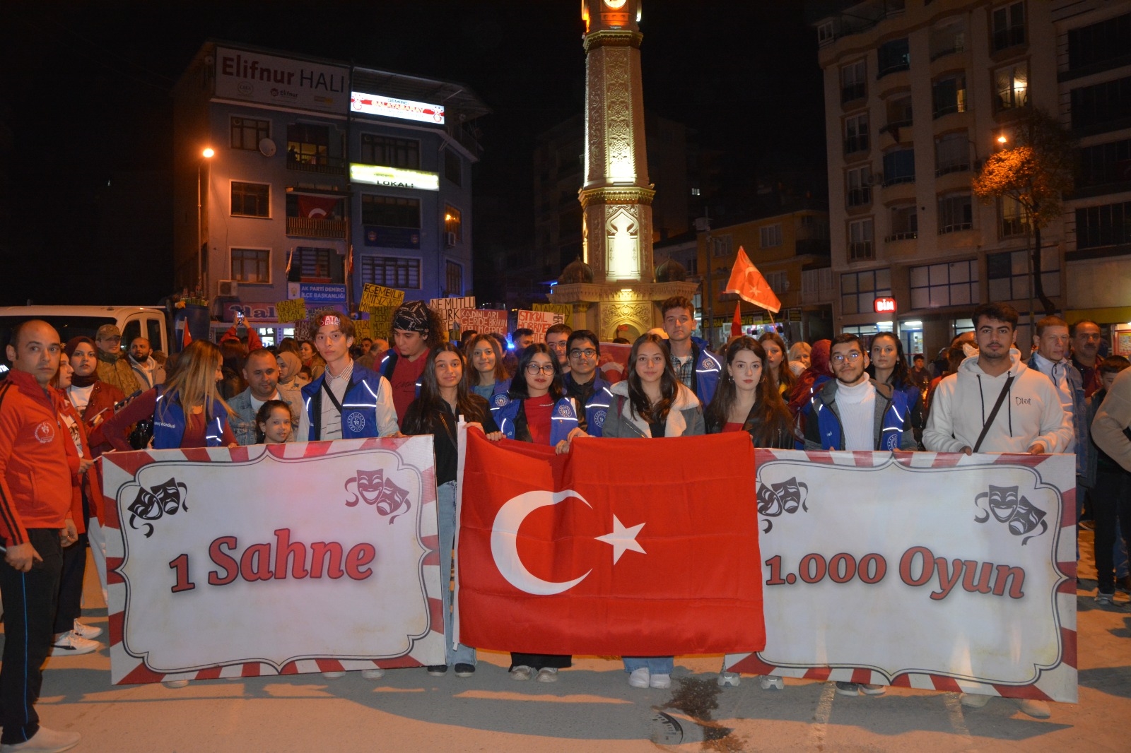 Çereşe meydanından başlayan yürüyüş marşlar ve şarkılar eşliğinde 15 Temmuz Demokrasi ve Şehitler Meydanı Atatürk anıtına kadar devam etti.