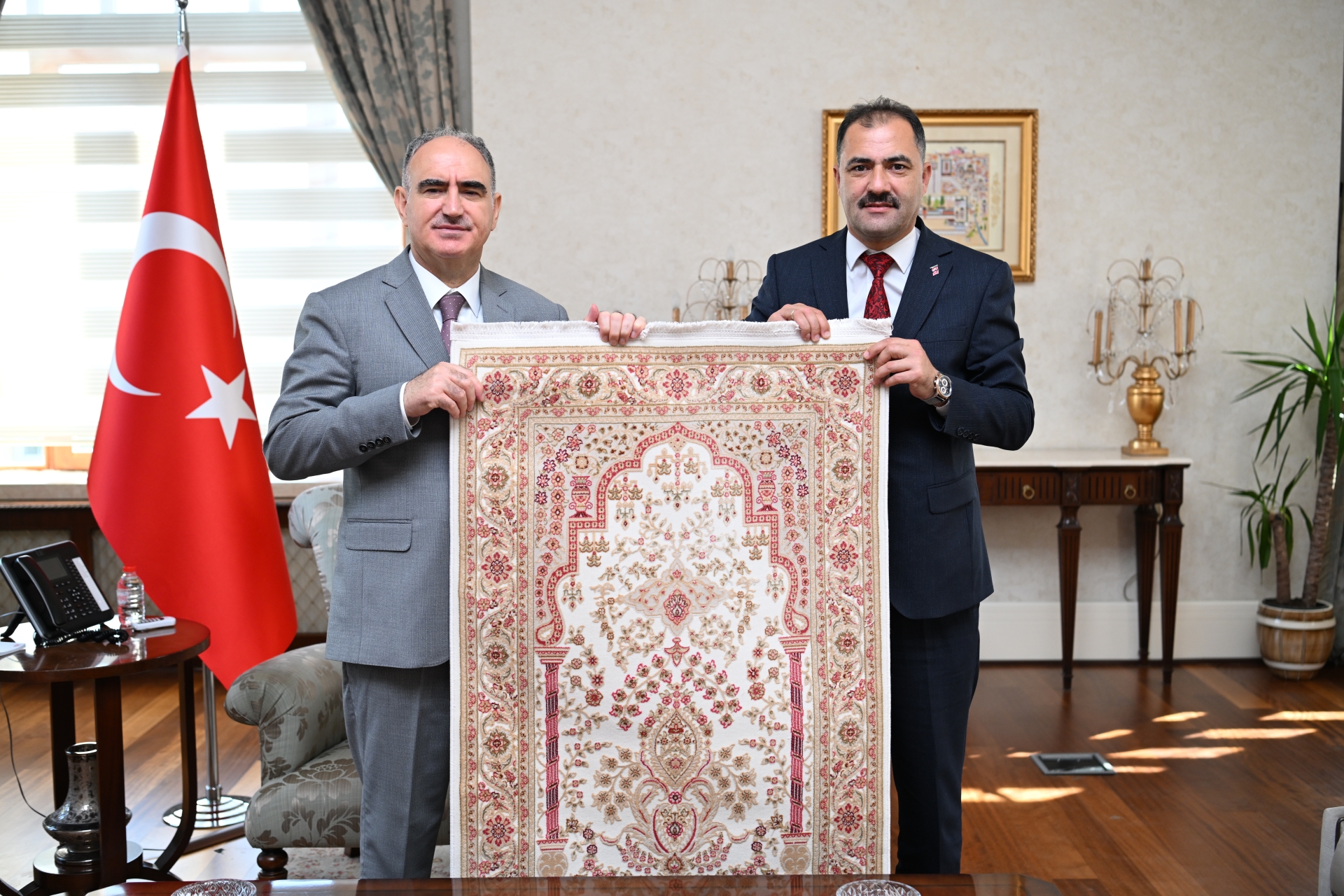 Başkanımız Erkan Kara ziyaret anısına Valimiz Vahdettin Özkan’a Demirci halısı takdim etti.