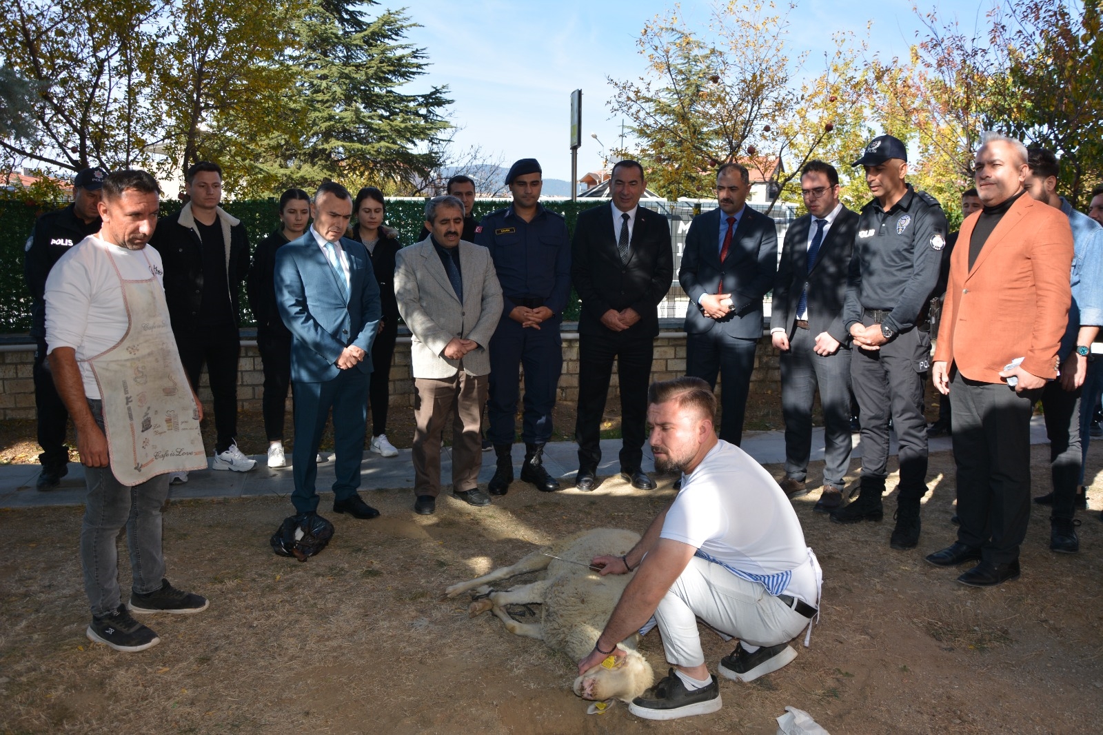İlçe Müftüsü İbrahim Sağlam'ın dua okumasının ardından yeni hizmete alınan araçlar için kurban kesimi yapıldı.