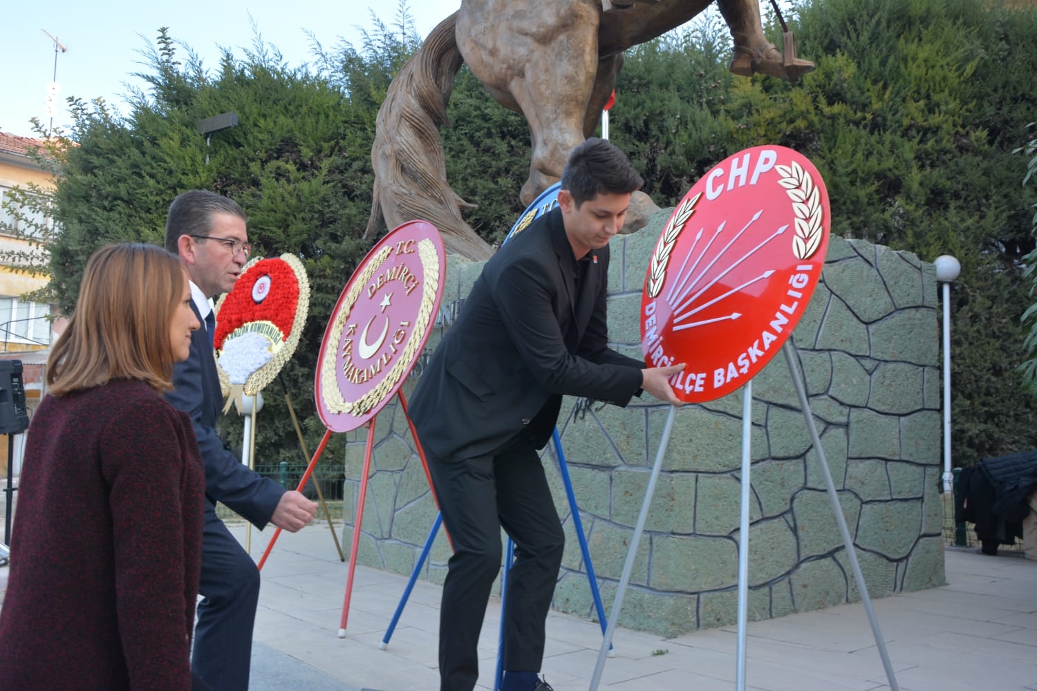 Demirci Kaymakamlığı, Demirci Belediye Başkanlığı, Garnizon Komutanlığı, AK Parti İlçe Başkanlığı, CHP İlçe Başkanlığı, MHP İlçe Başkanlığı ve Atatürkçü Düşünce Derneği tarafından Atatürk anıtına çelenk sunumu yapılarak, saygı duruşu ve İstiklal marşı okundu.
