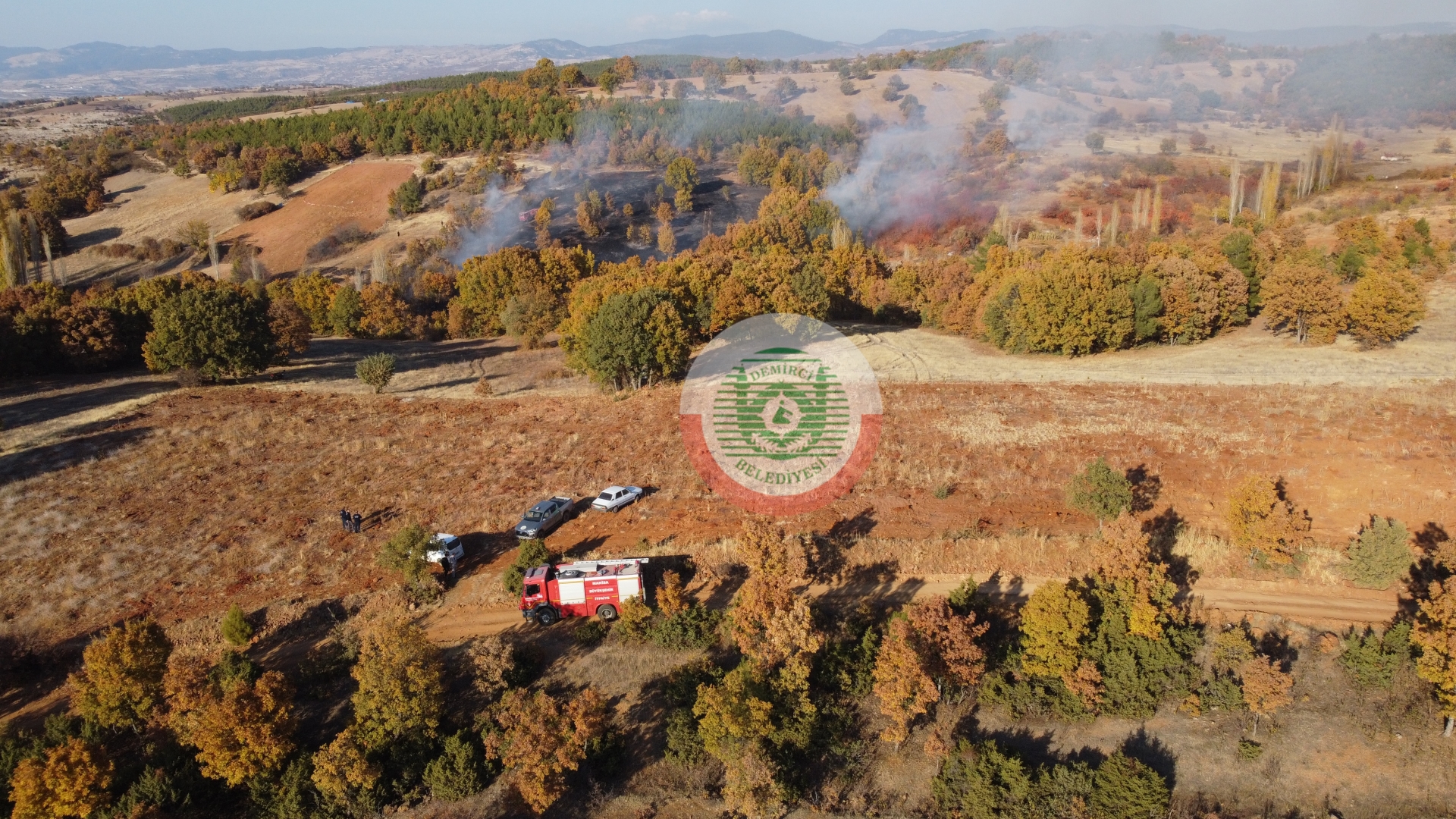 Demirci Orman İşletme Müdürlüğüne bağlı yangın söndürme arazözleri ve Manisa Büyükşehir Belediyesi Demirci İtfaiye ekipleri yangının meydana geldiği Kerpiçlik mahallesi kapaklı mevkiine ulaştı.