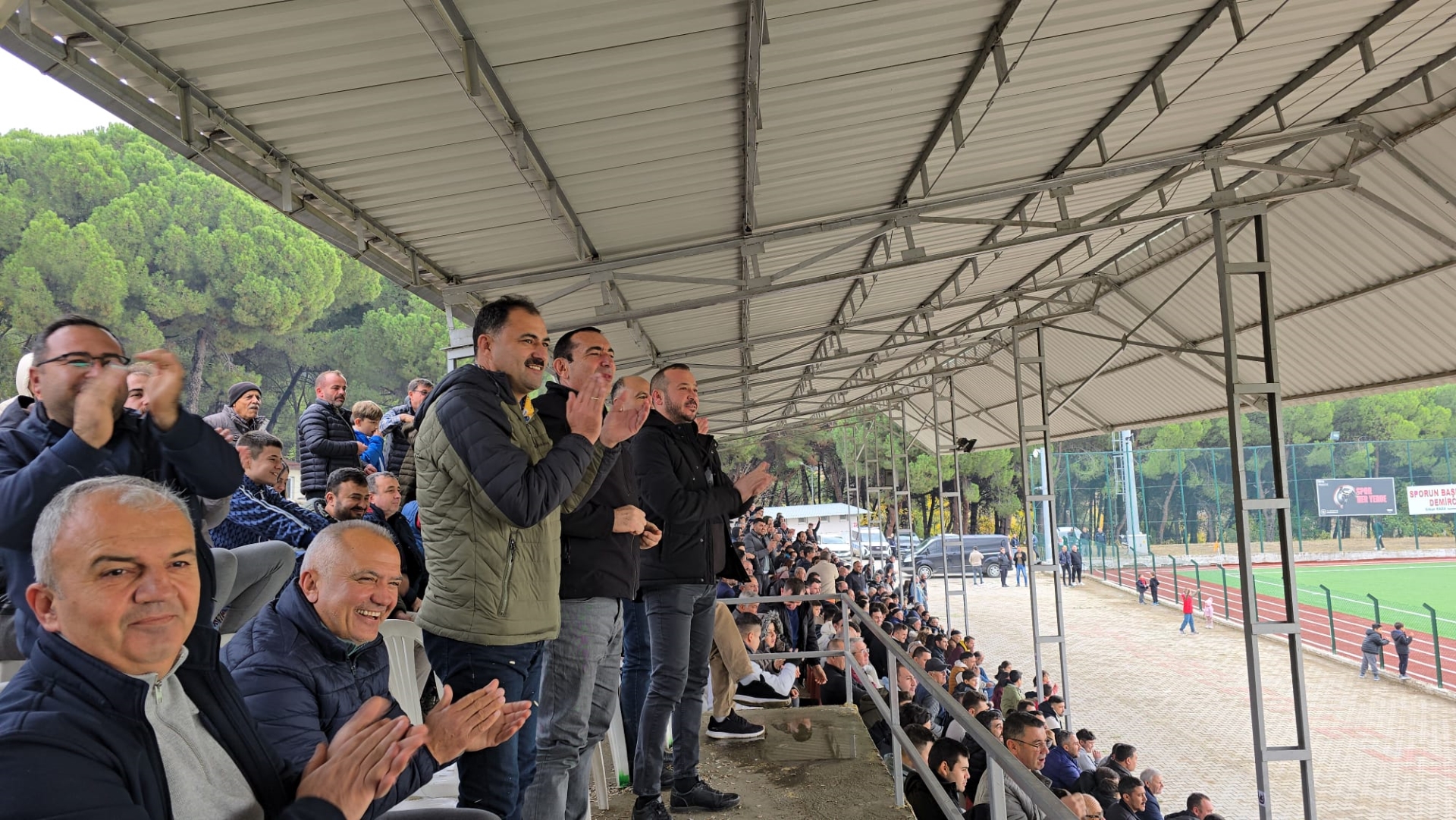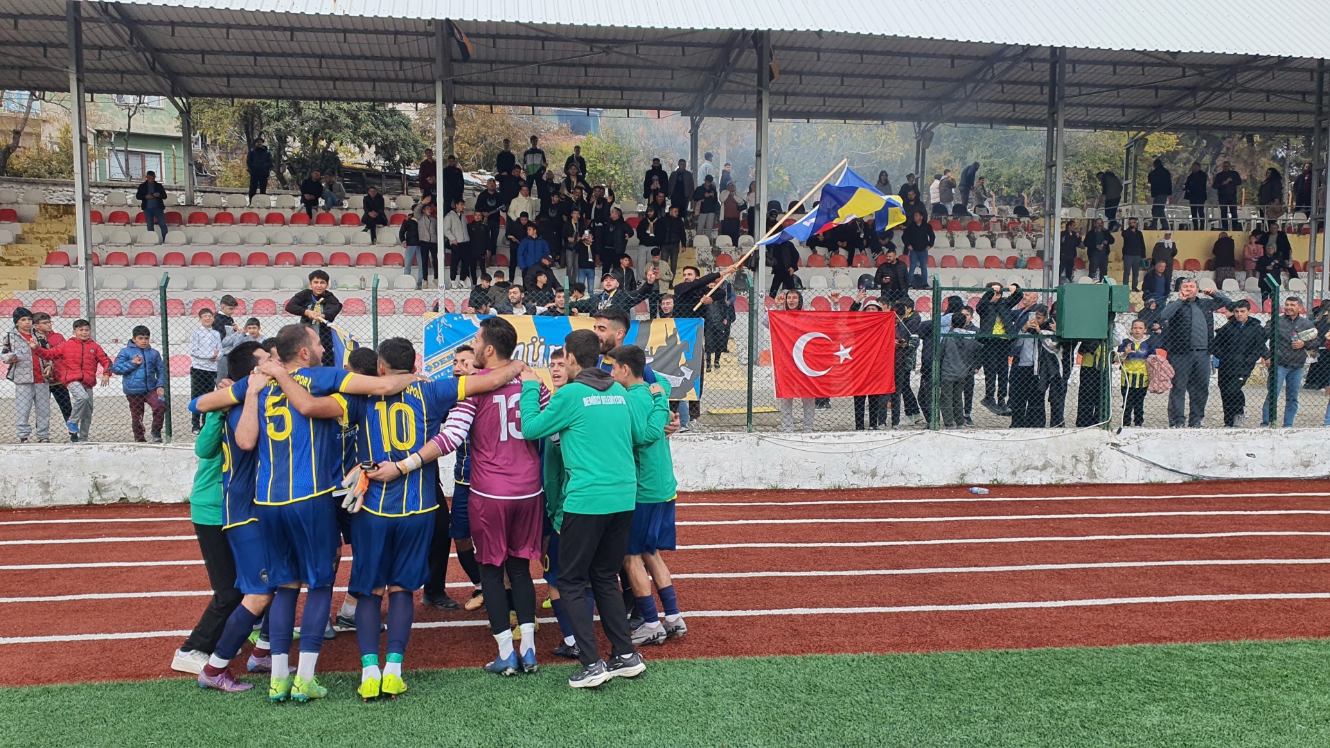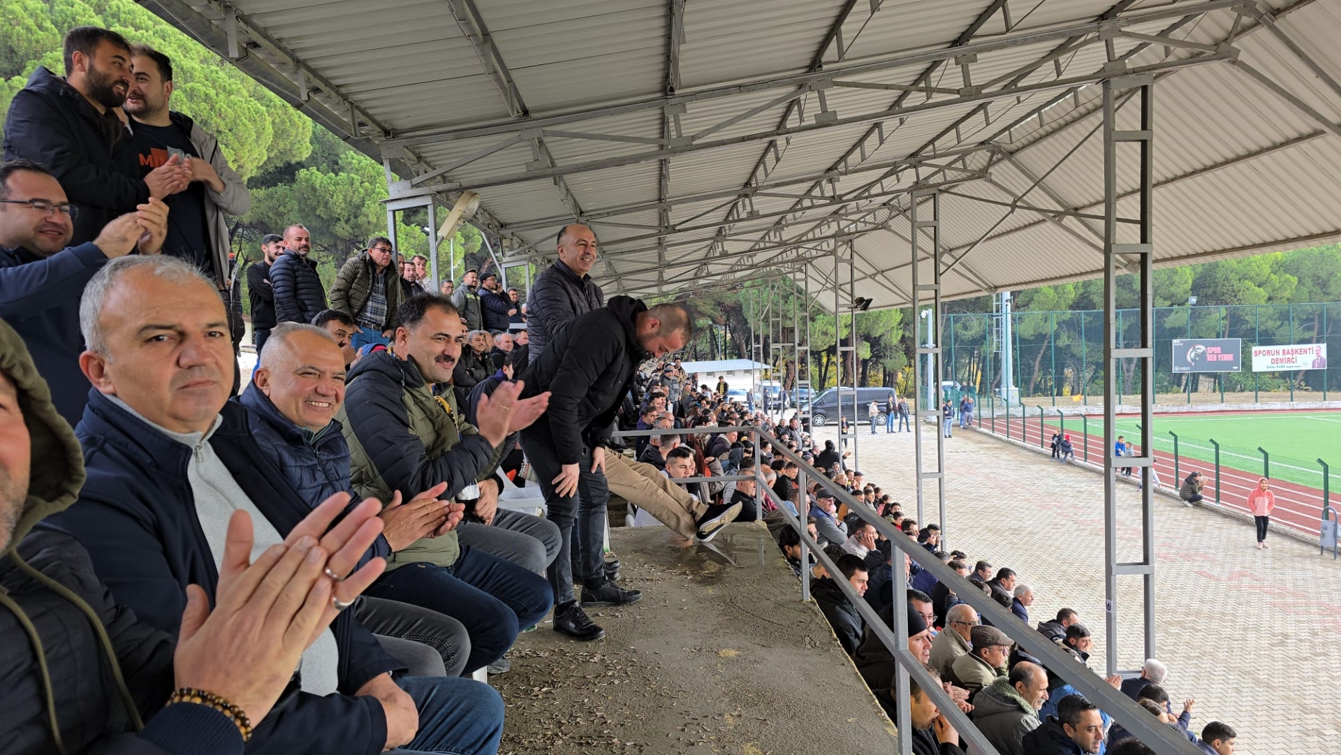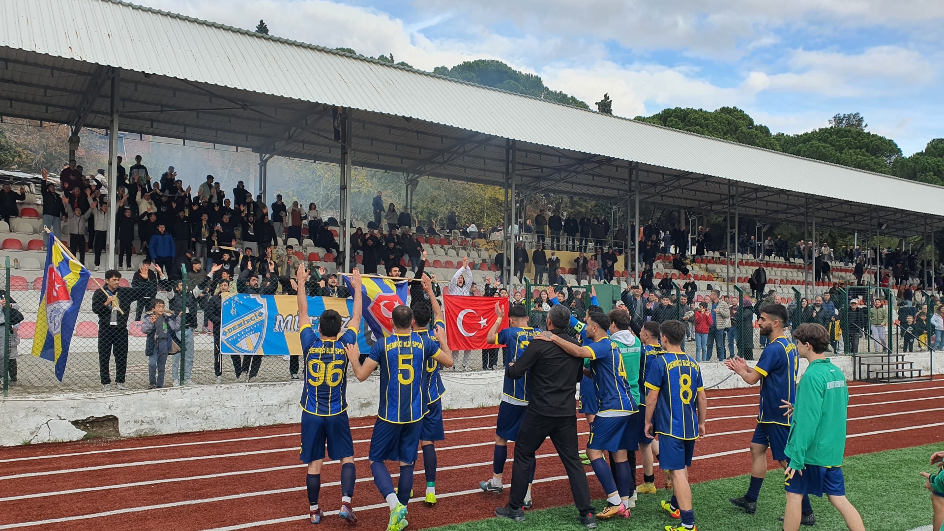 Müfreze taraftar grubu da maç boyunca tezahüratları ile Demirci Belediyespor'a destek verirken, Demircili vatandaşlar da maça yoğun ilgi göstererek tribünleri doldurdu.