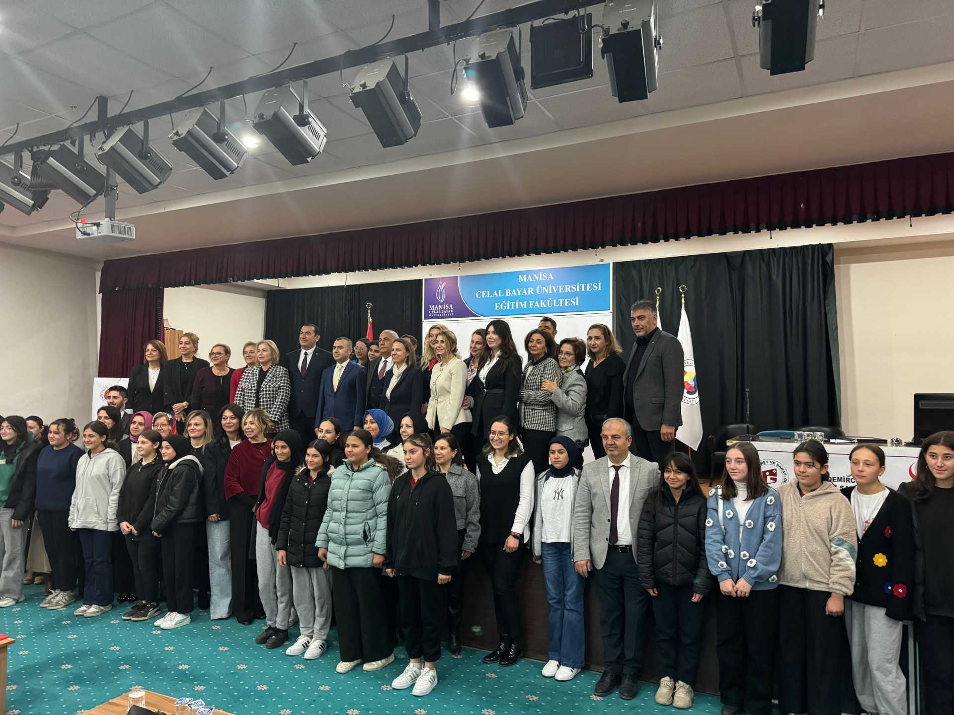 26 Kasım Salı günü Demirci Ticaret ve Sanayi Odası tarafından Eğitim Fakültesi Basri Koçyiğit Kültür Merkezinde düzenlenen konferansa Kaymakamımız Yavuz Arslan, Belediye Başkan Yardımcımız İsmail Hakkı Gül, Eğitim Fakültesi Dekanı Prof. Dr. Fatma Şaşmaz Ören, İlçe Milli Eğitim Müdürü Bilal Çetinkaya, Ticaret ve Sanayi Odası Başkanı Kasım Kabak, Meslek Liselerinde, Mahmutlar, Esenyurt ve Kılavuzlar ortaokullarında eğitim gören kız öğrenciler katıldı.