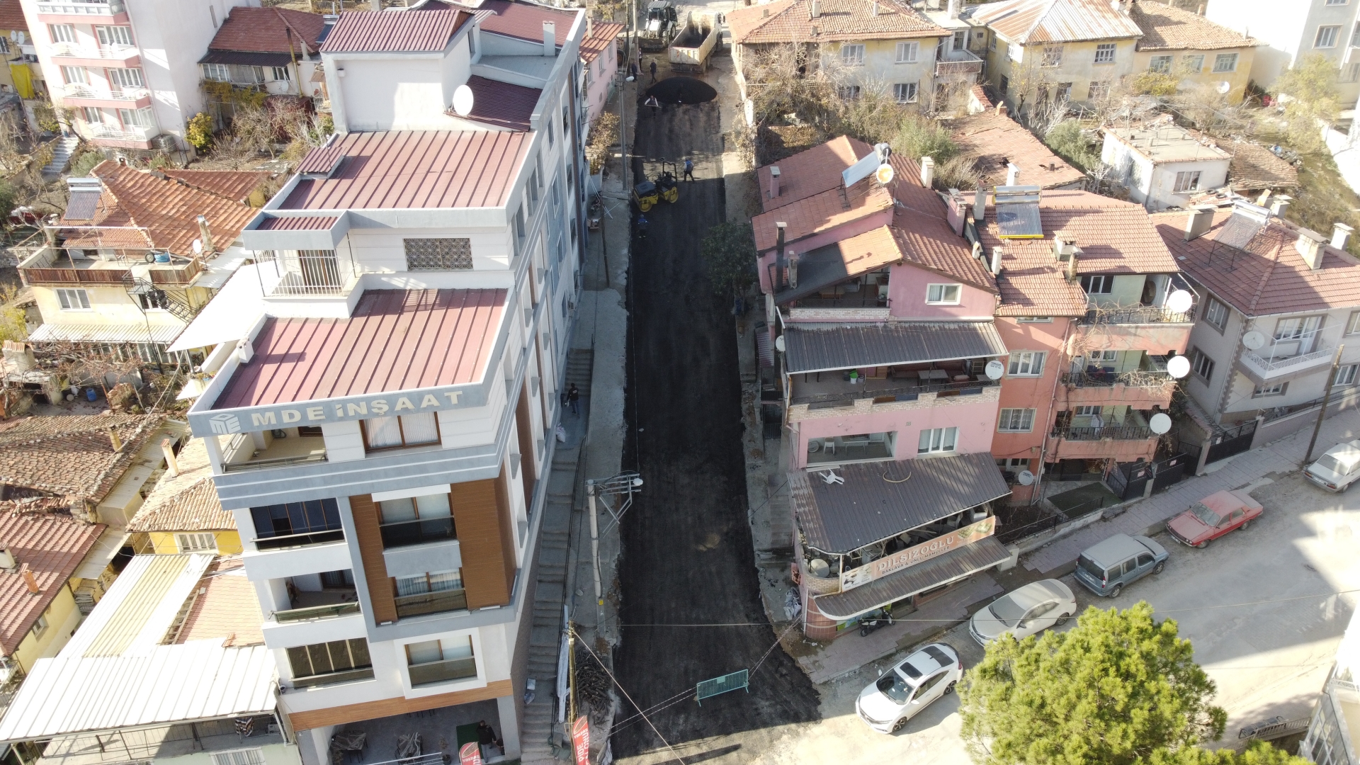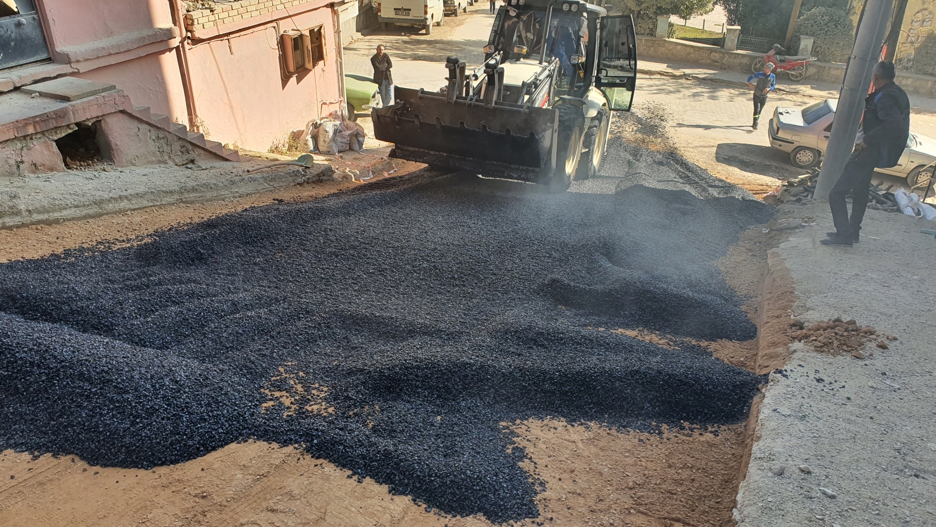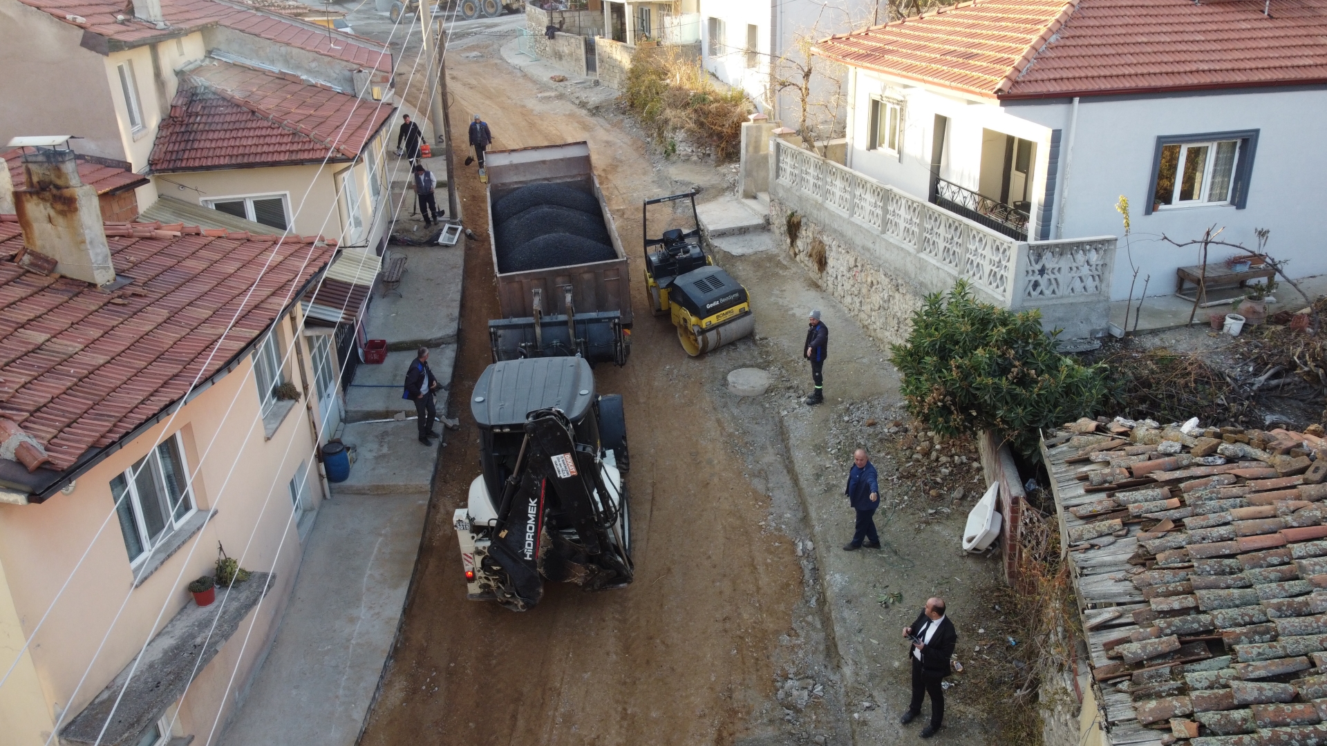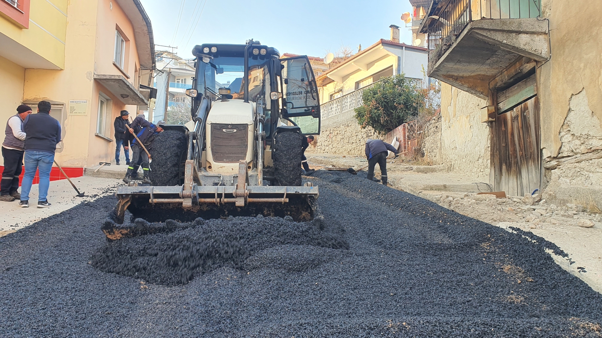 Şantiyede hazırlanan sıcak asfalt belediyemiz kamyonları ile Fatih Mahallesi Gül sokağa sevk edildi.