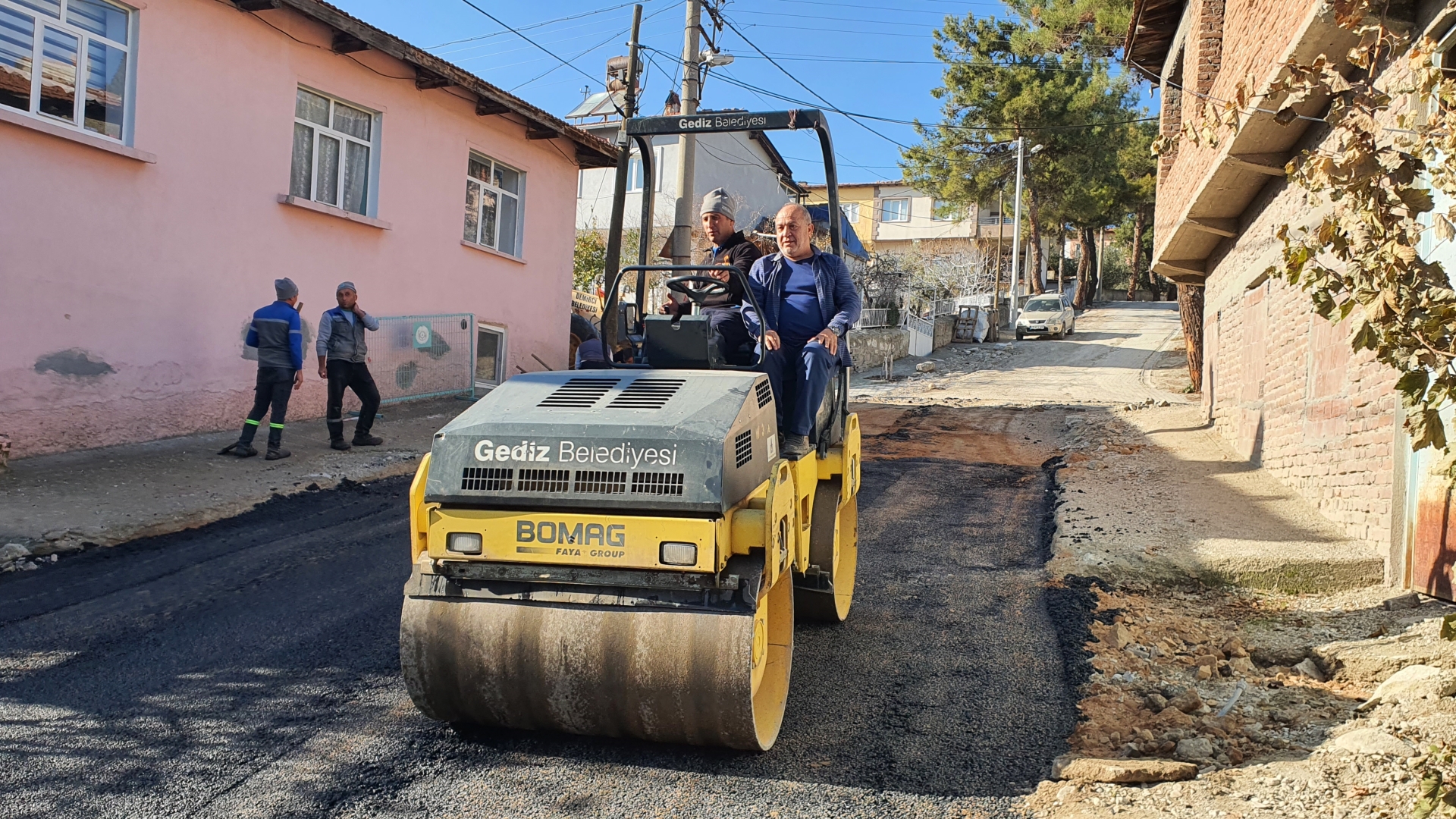 Belediyemiz iş makineleri ile yola dökülen sıcak asfalt ekipler ile seriminin yapılmasının ardından silindir ile de sıkıştırma yapıldı.
