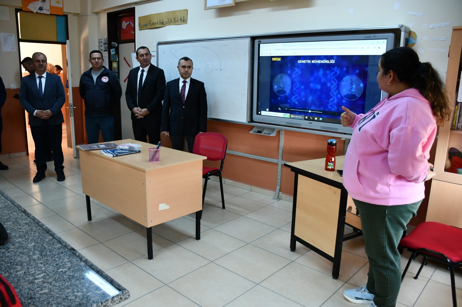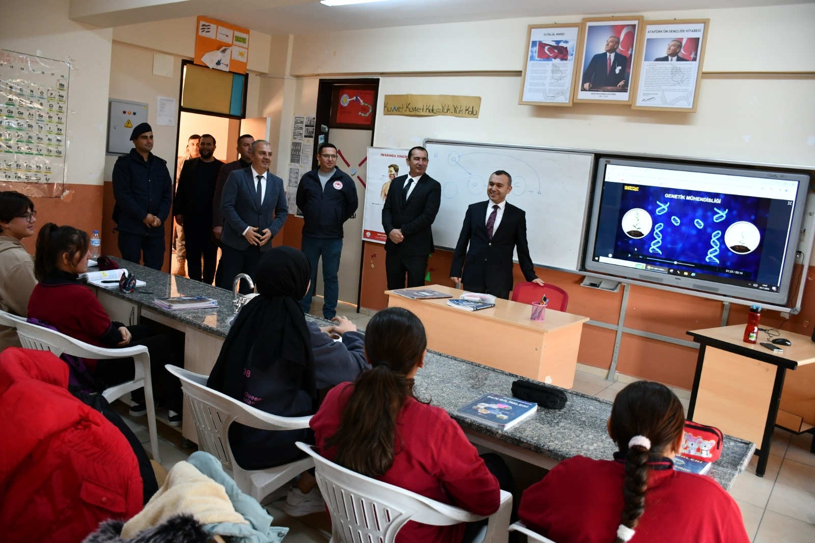 Halk toplantısının ardından Kaymakamımız Yavuz Arslan, Başkan Yardımcımız İsmail Hakkı Gül ve beraberindeki İlçe protokolü beraber Kılavuzlar Mazhar Dede İlkokulunu ziyaret ederek, öğretmen ve öğrencilerle buluştular.