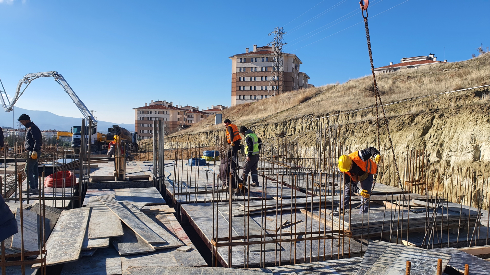 3 blokta 2. katlar ve 2 blokta 1. Katların yapımı tamamlanırken, diğer bloklarda ise 1. Kat inşaatları sürüyor.
