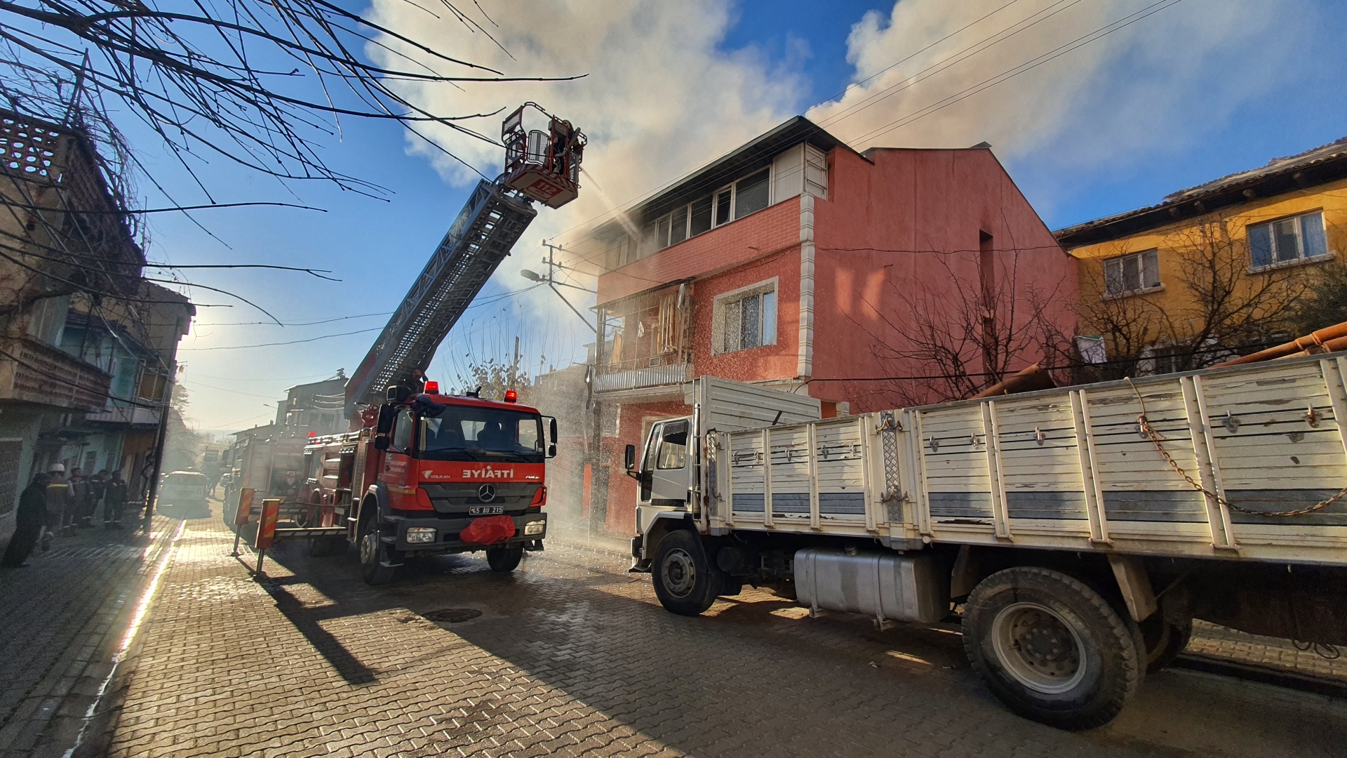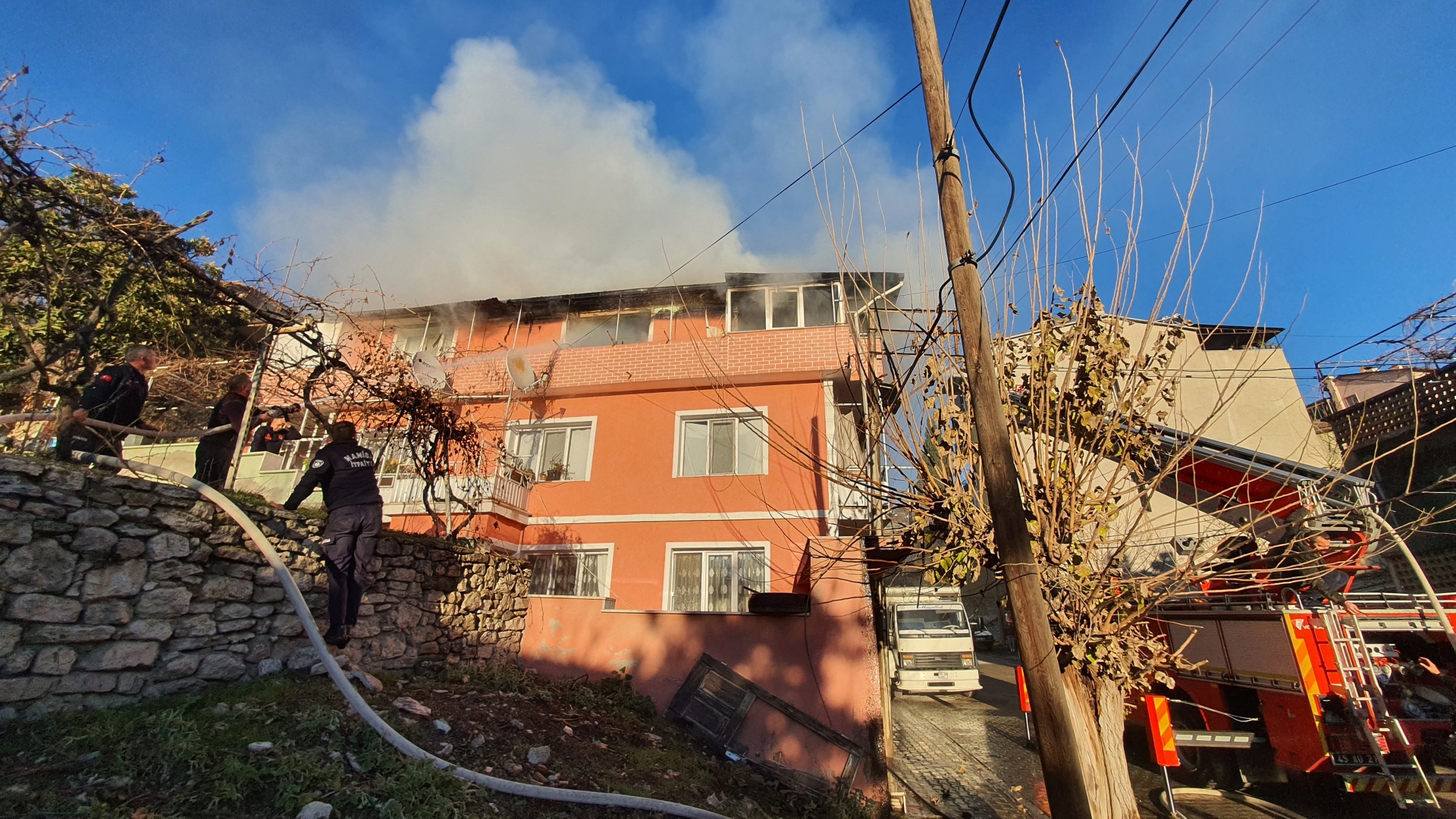 18 Aralık 2024 / Çarşamba günü Hacıtürbek Mahallesi Hürriyet caddesinde Nevzat G'ye ait 3 katlı evin 3. katında henüz belirlenemeyen bir nedenden dolayı yangın çıktı.