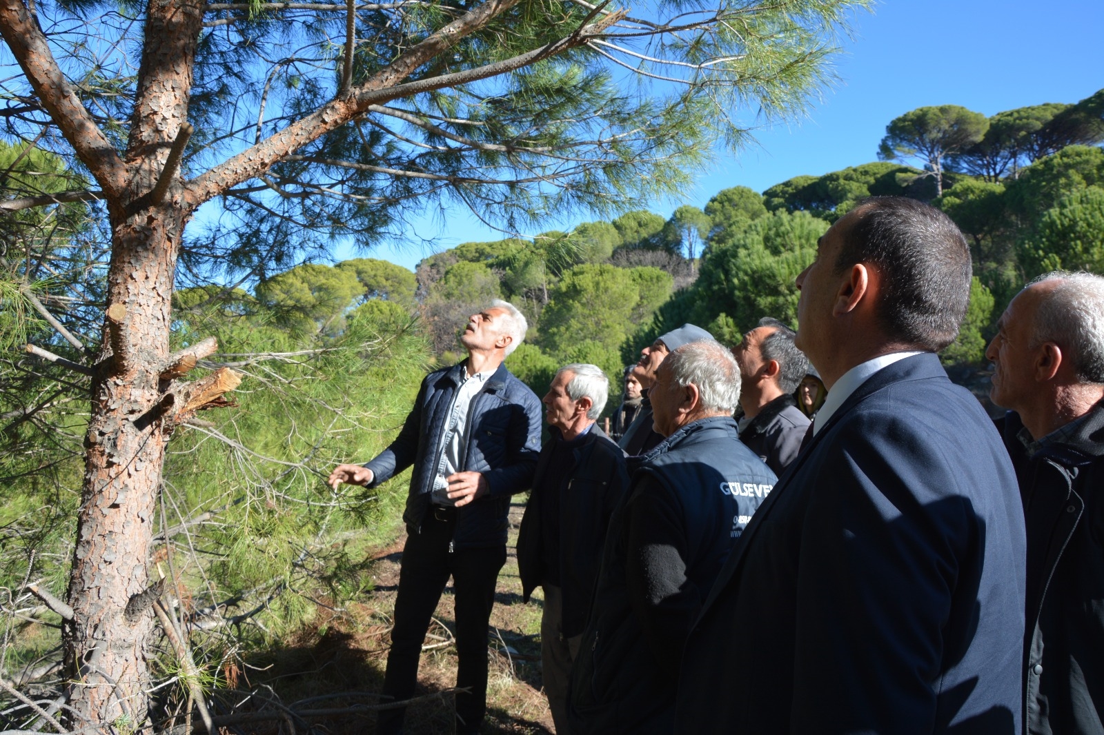 Bergama İlçe Milli Eğitim Müdürü Ekrem Ulus'un da katıldığı ziyaret programında Kaplan Köyü Muhtarı Ali Yılmaz ve Aşağıbey Köyü Muhtarı Abidin Kartal ile birlikte çam fıstığı ağaçlarının bakımı, çam fıstığı üretim sahası ve çam fıstığı ile ilgili bilgilendirme yaptılar.