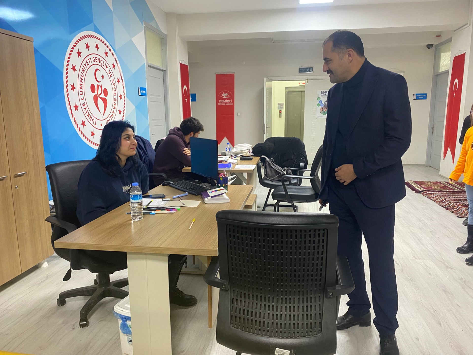 Başkanımız Erkan Kara, bilgisayar sınıfı, kütüphane ve farklı kurslarda öğrenim gören öğrenciler ve gençlerle buluştu.