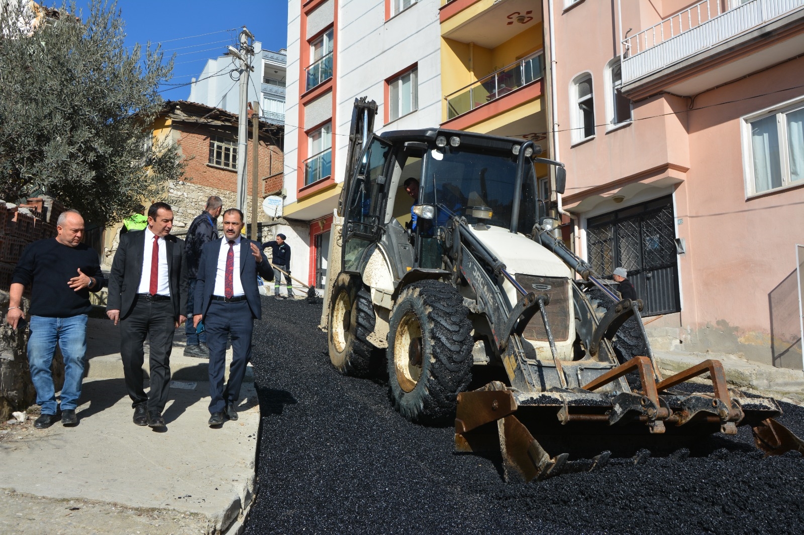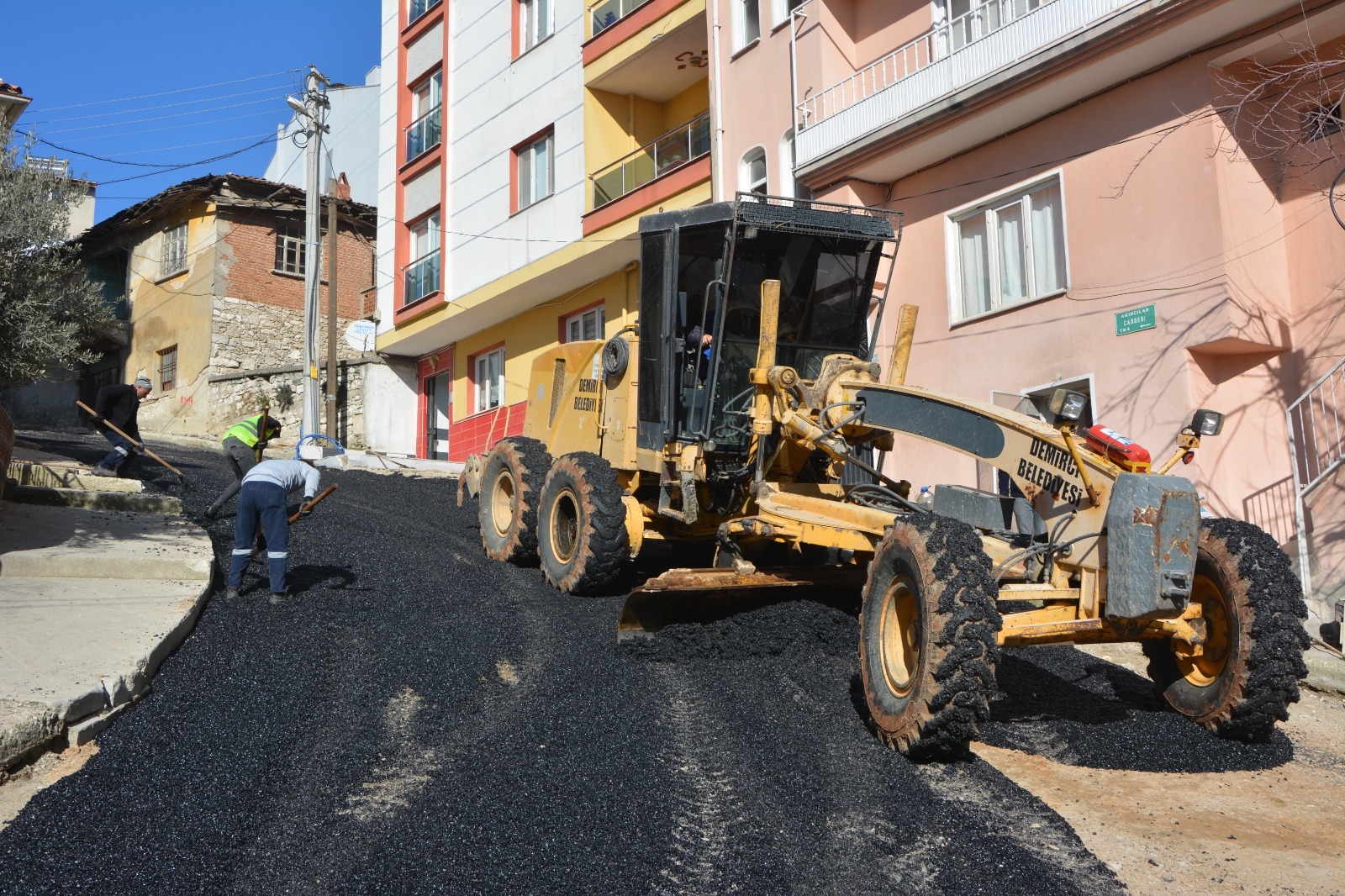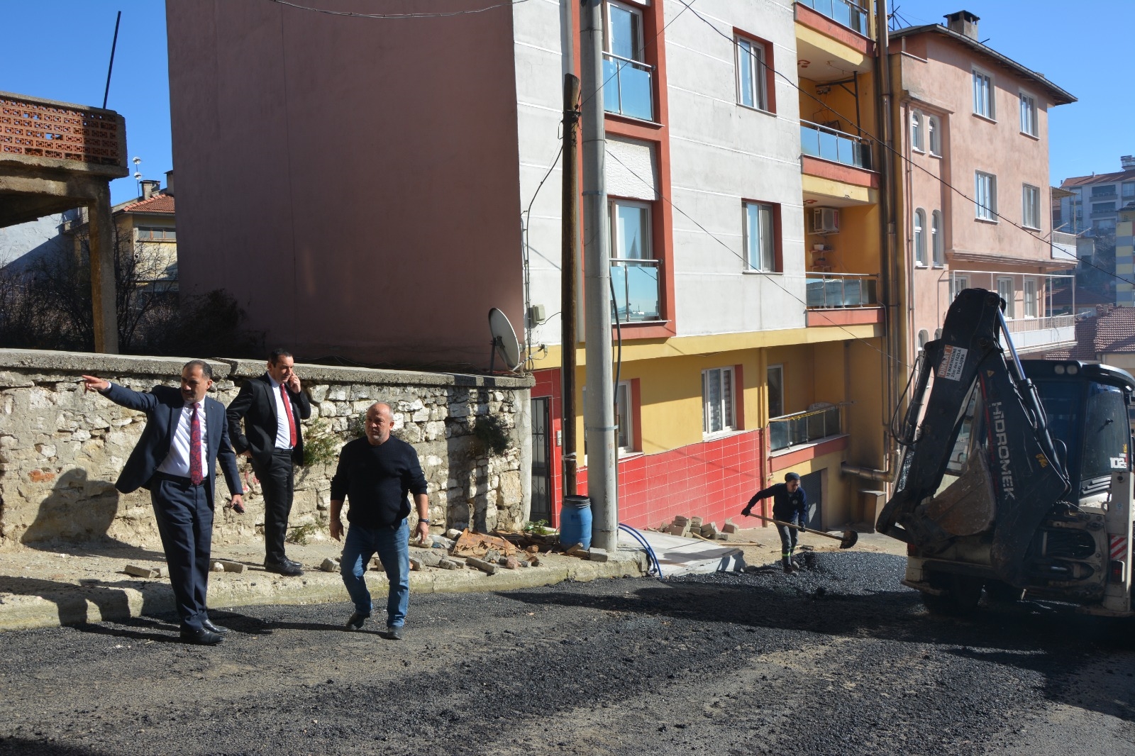 İlçe merkezinde altyapı çalışmalarının tamamlandığı güzergâhlarda havaların ısınması ile birlikte asfalt plent makinesi ile üretilen sıcak asfalt Kasımfakı Mahallesi Akıncılar caddesindeki rampaya serildi.
