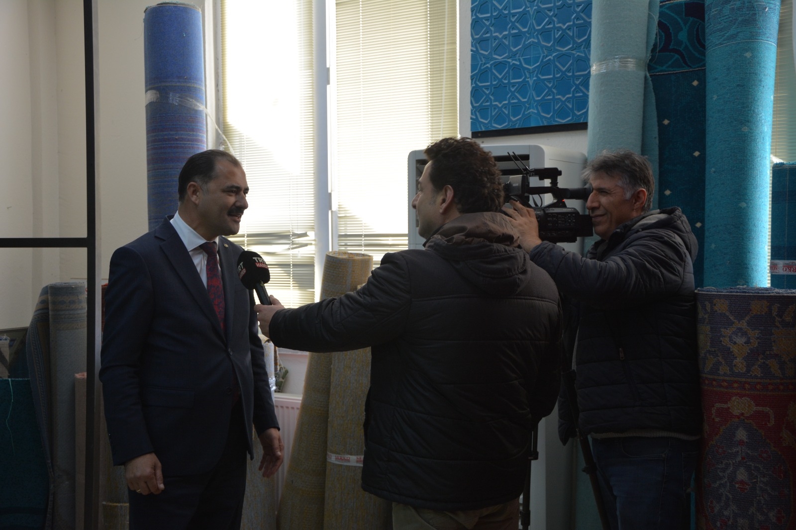 2 Ocak 2025 Perşembe günü Demirci’ye gelen TRT HABER ekibi Demirci’de cami halısı üretimi yapan işletmelerde çekimler yaparken, Başkanımız Erkan Kara ile de bir röportaj gerçekleştirdiler.
