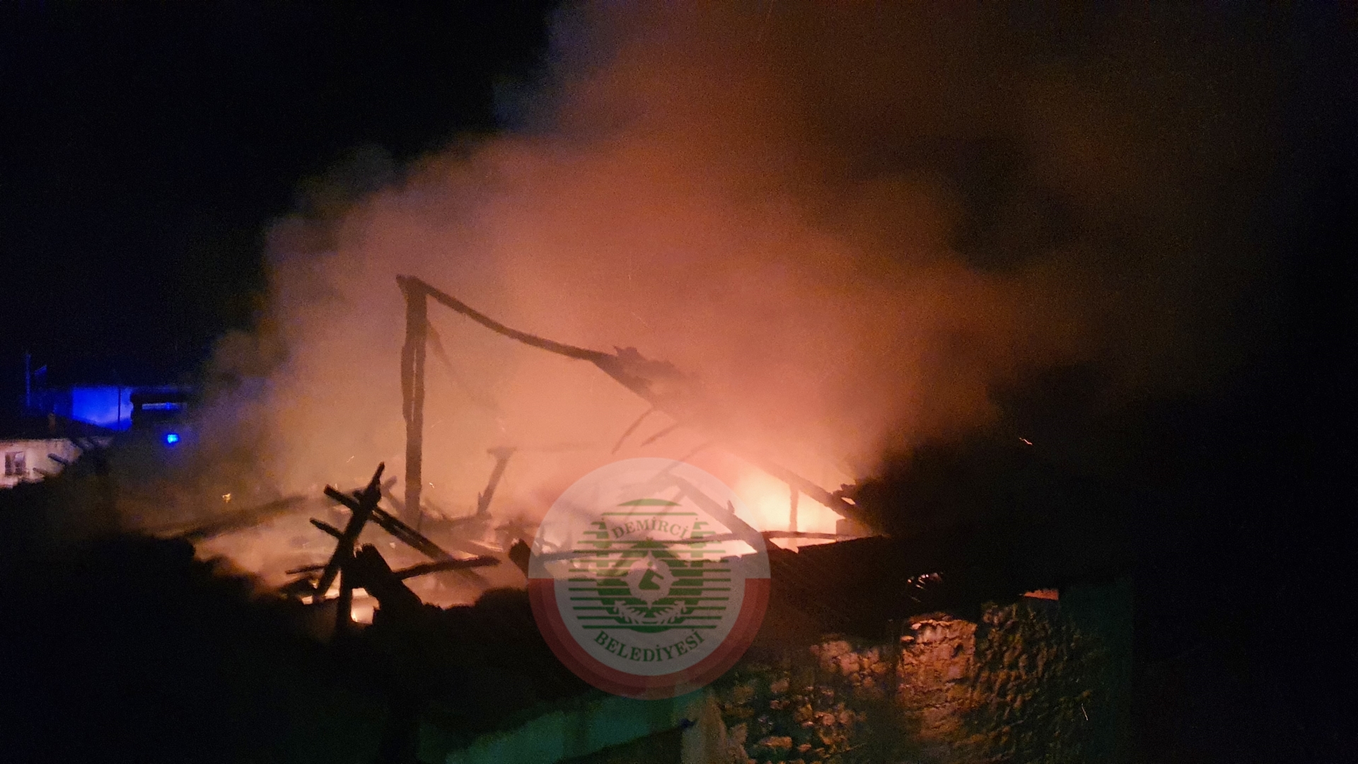 Demirci’de çıkan yangında bir ev yanarak zarar gördü.
