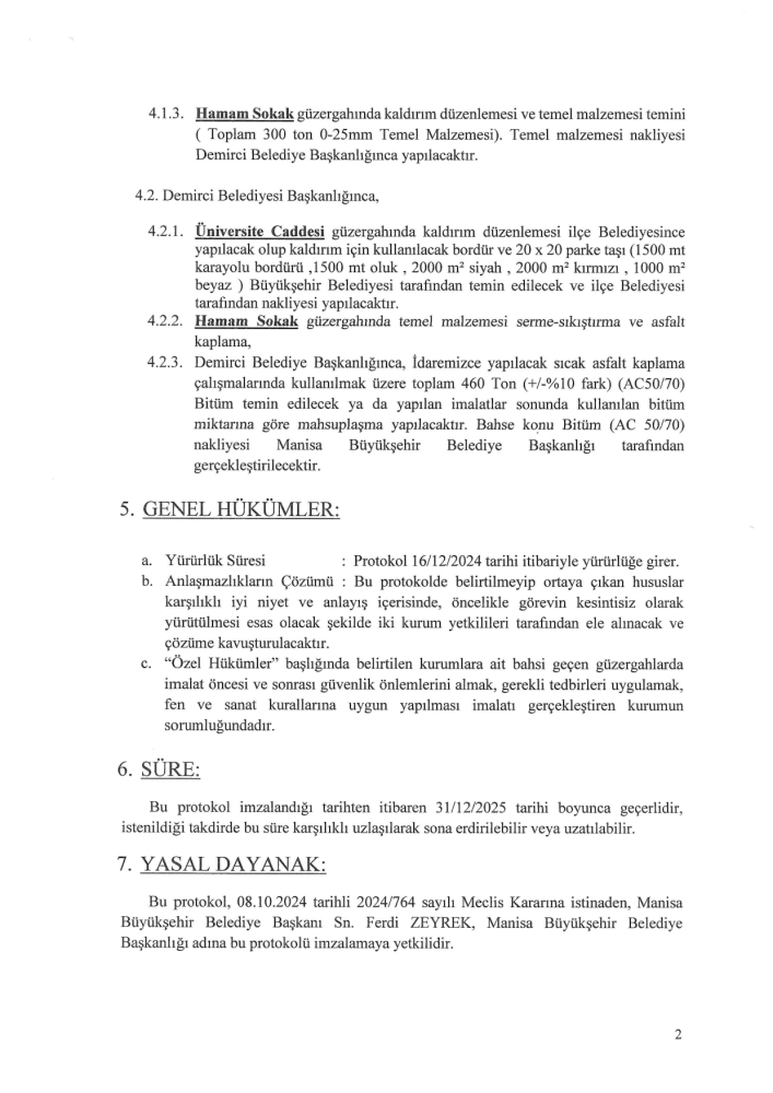 2021 yılında yapılan protokol ile yine aynı yılın Kasım ayından bu yana İlçe merkezinde devam eden kanalizasyon, içme suyu ve atık su arıtma tesisi inşaatı sözleşme gereği kanalizasyon ve içme suyu inşaatının yapımı esnasında açılan hendek ve temel kazıları nedeniyle bozulan yol kaplamaları Manisa Su ve Kanalizasyon İdaresi Genel Müdürlüğü tarafından yapılacaktır.