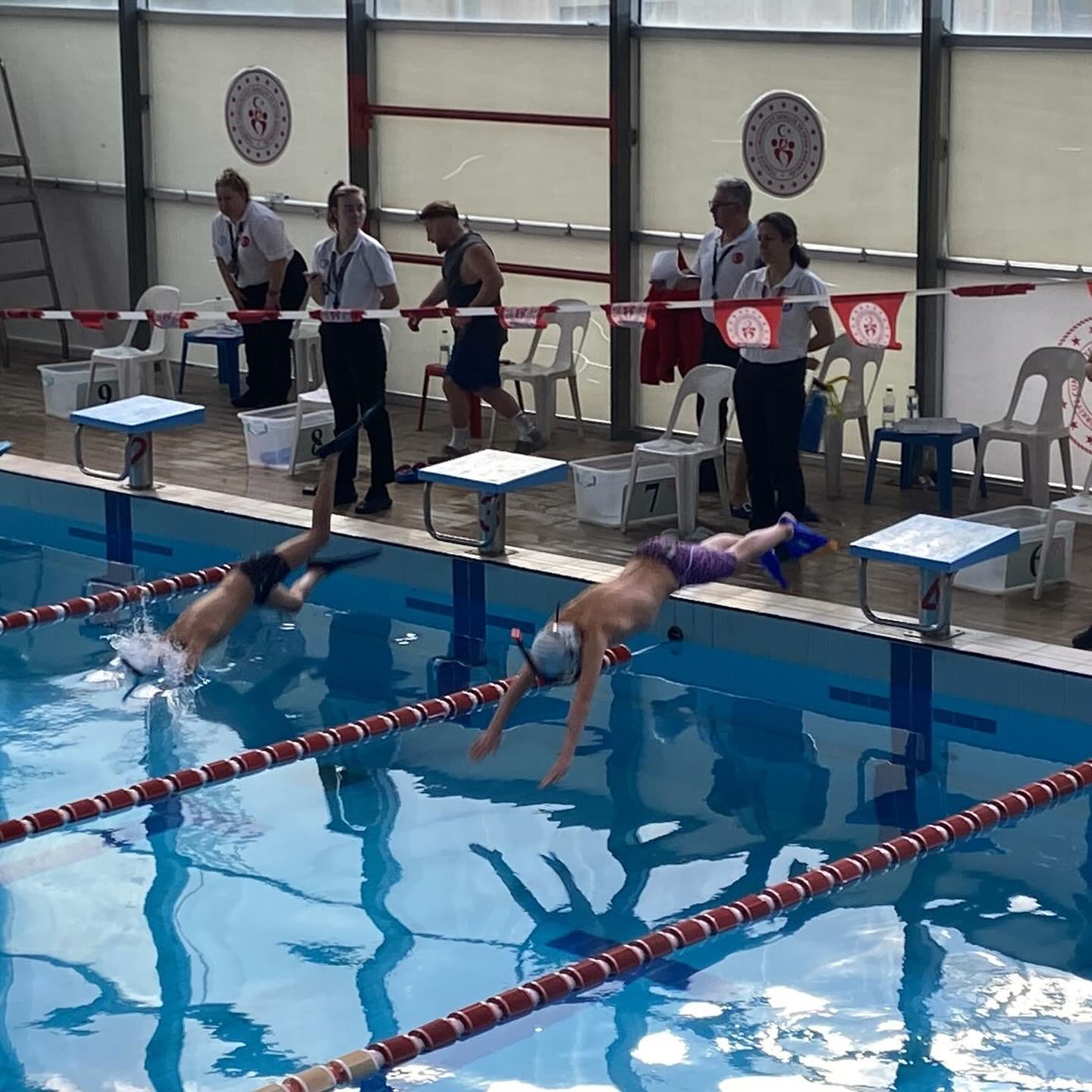 Manisa'da yapılan Okul Sporları Paletli Yüzme İl Birinciliği müsabakalarında Yıldızlar ve Küçükler kategorisinde büyük bir başarı elde ederek 15-16 Mart 2025 tarihinde Şanlıurfa'da yapılacak olan Türkiye şampiyonasına katılmaya hak kazanan sporcularımız Zeynep Sena Özkara, Azra Çoban, Ömer Faruk Önceltekin, Elif Begüm Can, Elif Ece Korkmaz, Muhammed Ali Çınar ve Metehan Yıldırım katılacaklar.