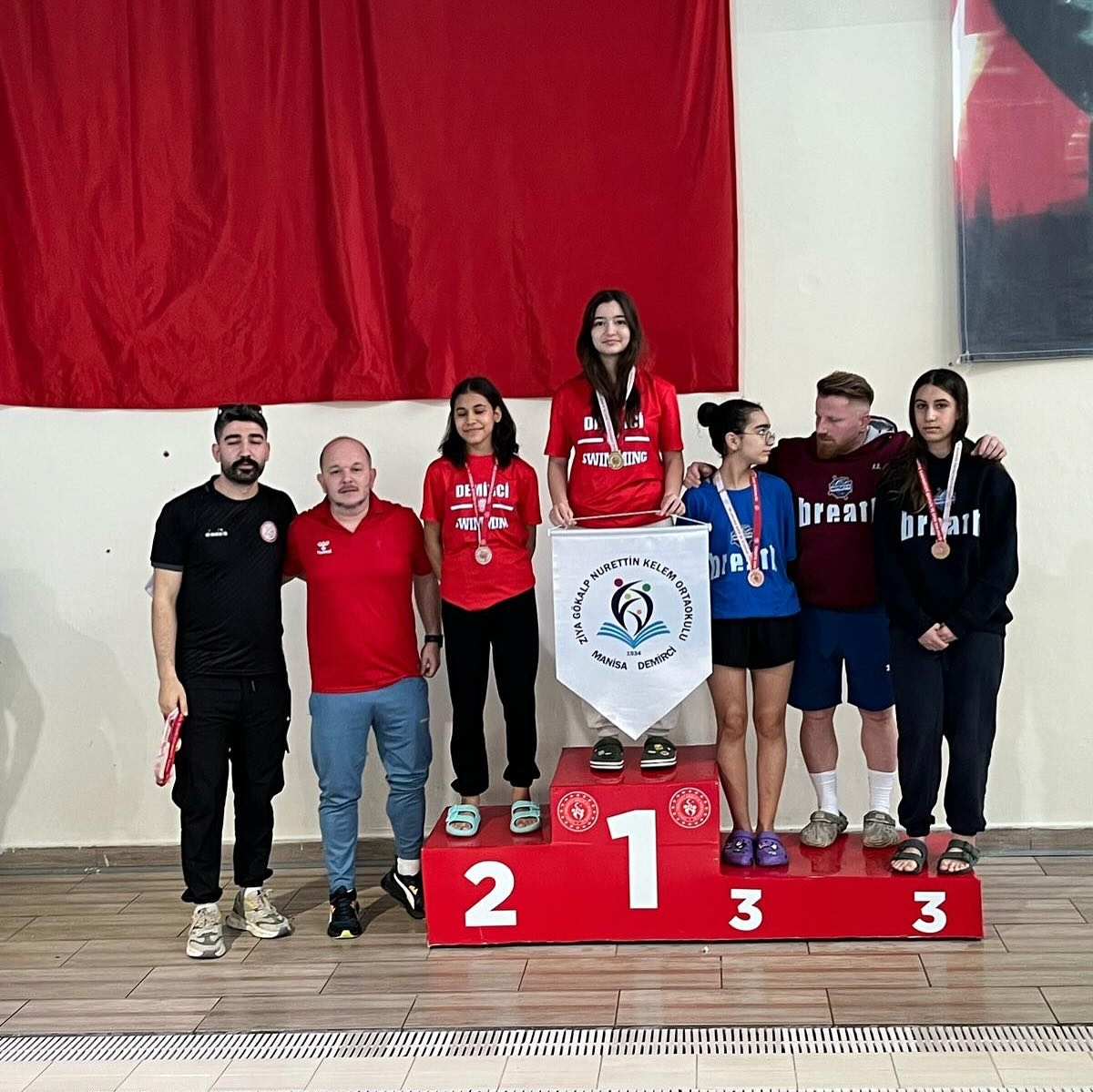 Manisa'da yapılan Okul Sporları Paletli Yüzme İl Birinciliği müsabakalarına katılan Demirci'li sporcular bütün kategorilerde derece elde etti.